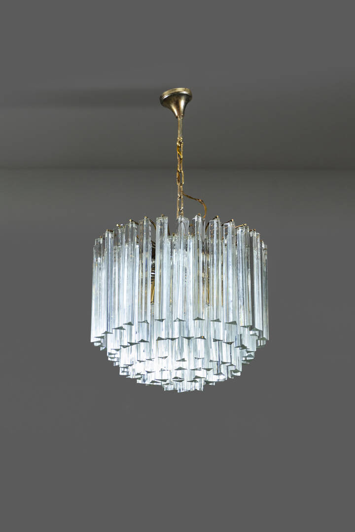 Struttura in ottone ed elementi in vetro di Murano.