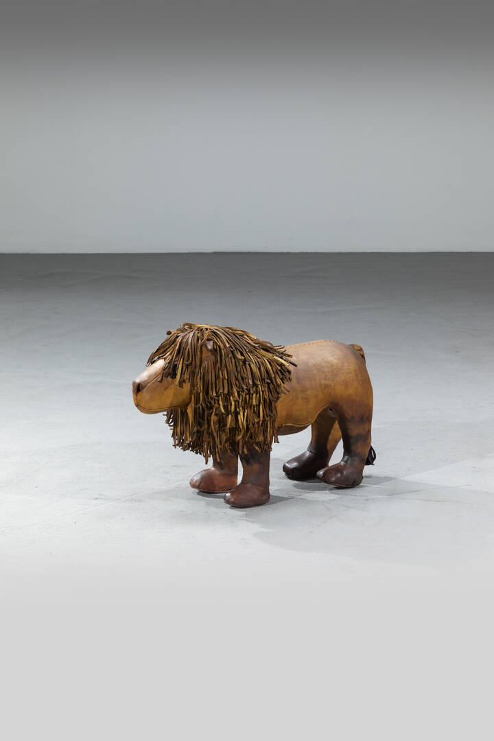 Leone rivestito in cuoio.