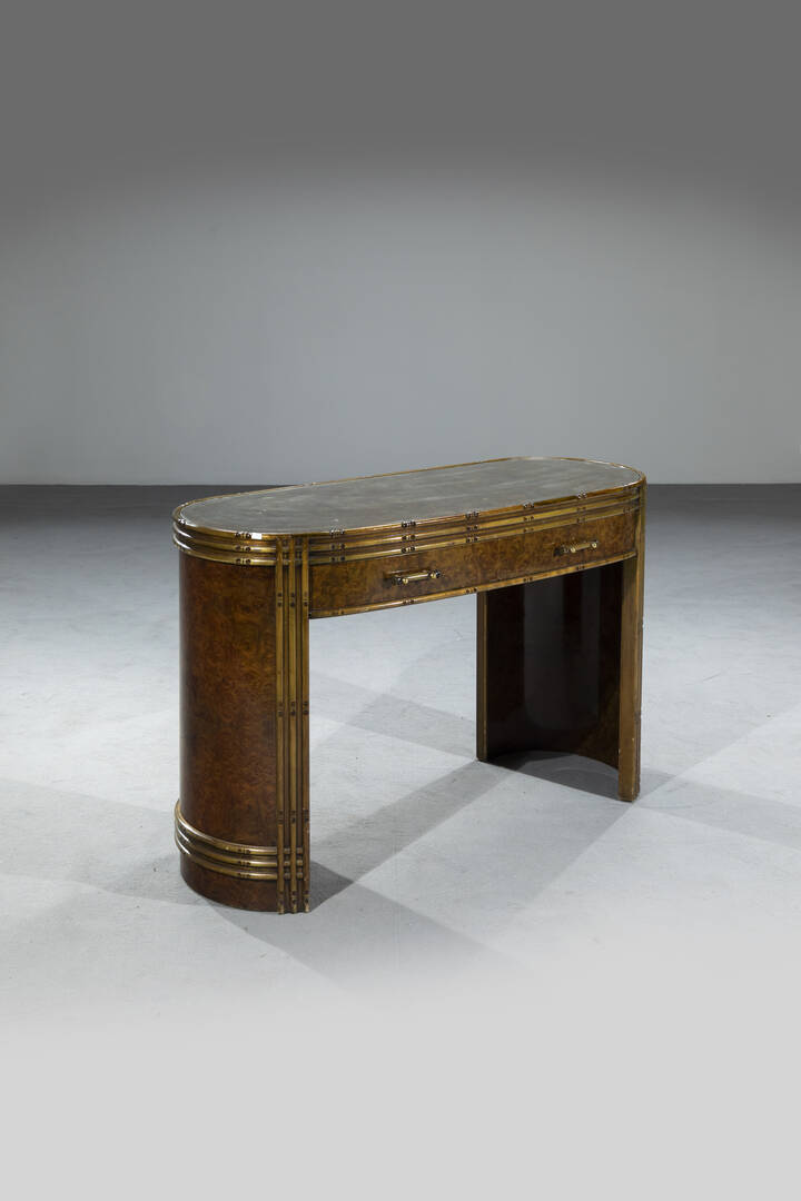 Struttura in radica e bamboo, piano in vetro, particolari in ottone.