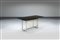 Struttura in acciaio e ottone, piano in vetro fumè.