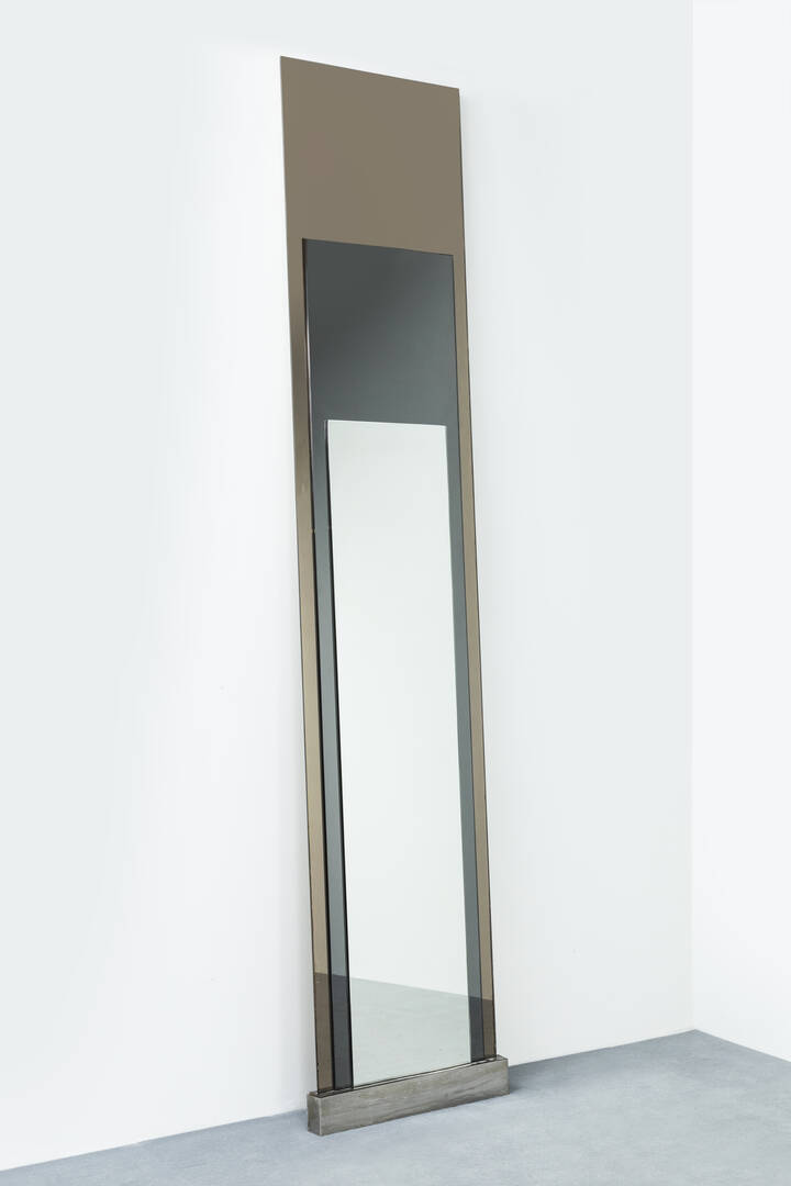 Grande specchiera a specchi sovrapposti di diversi colori.