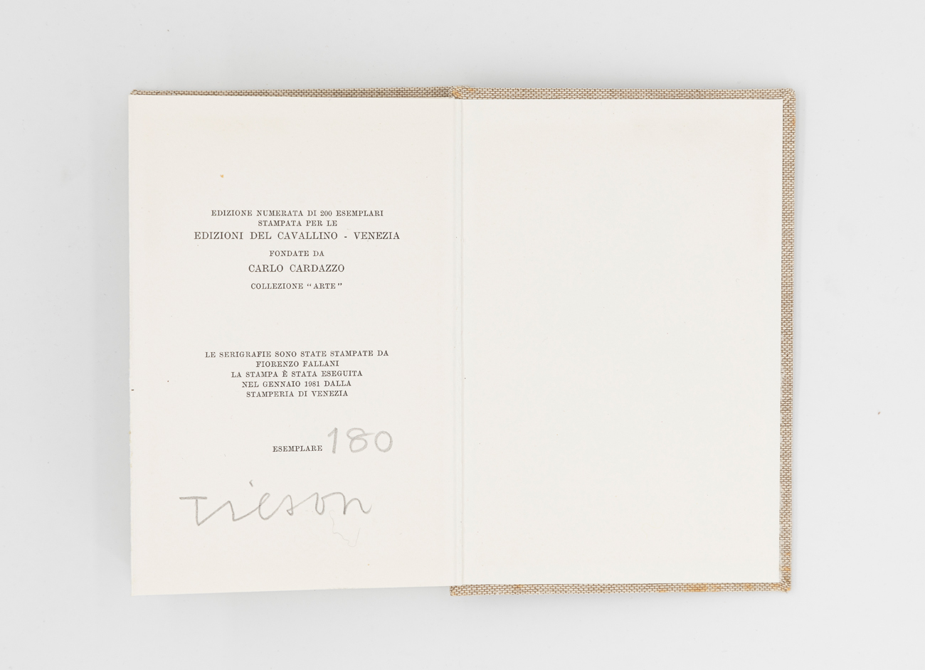 Edizione numerata realizzata in 200 esemplari per le Edizioni Del Cavallino - Venezia (Collezione Arte)