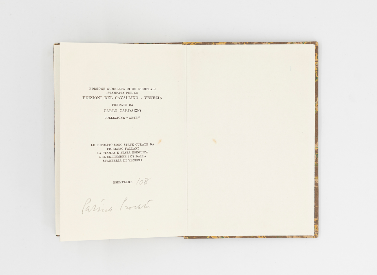 La stampa è stata eseguita nel Settembre 1974 dalla Stamperia di Venezia