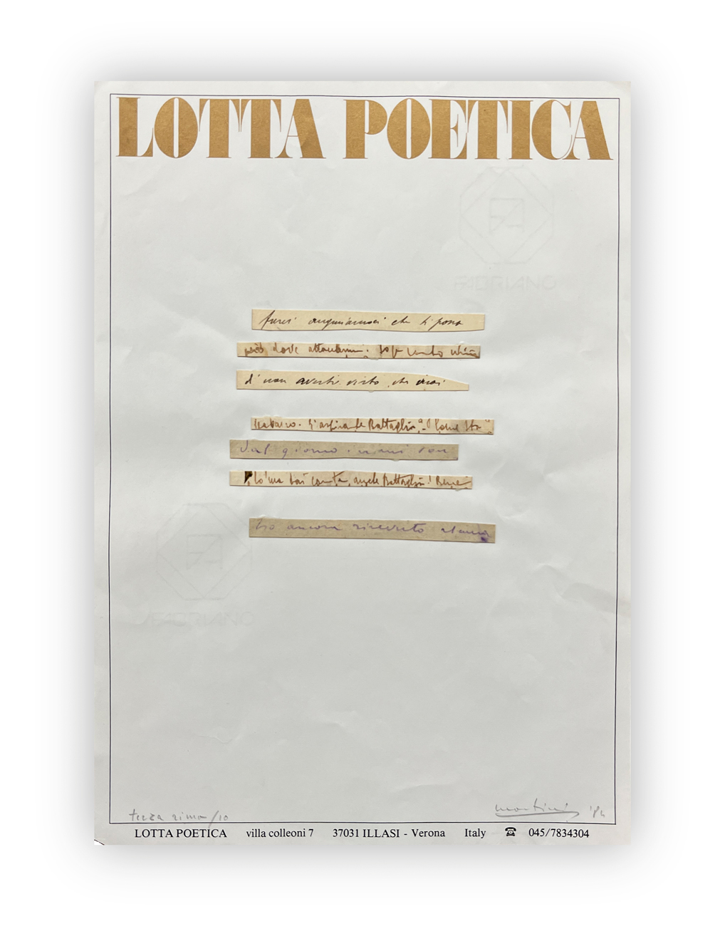 Tecnica mista e collage su carta intestata Lotta Poetica
