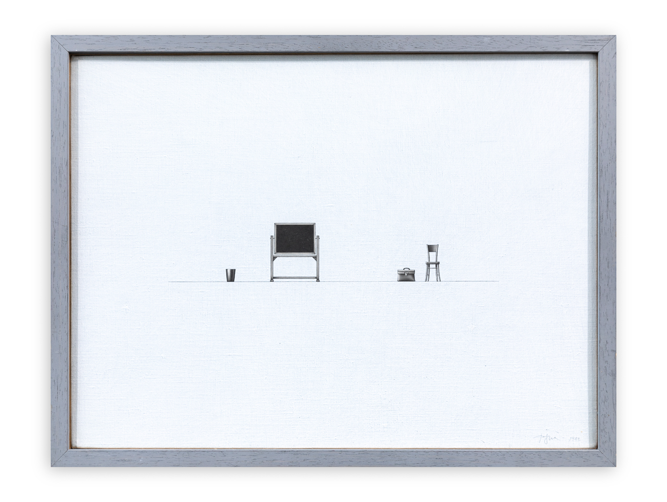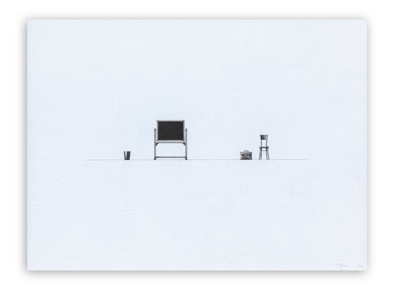 Lavagna con sedia, cartella e cestino (Elenco di cose 195), 1982