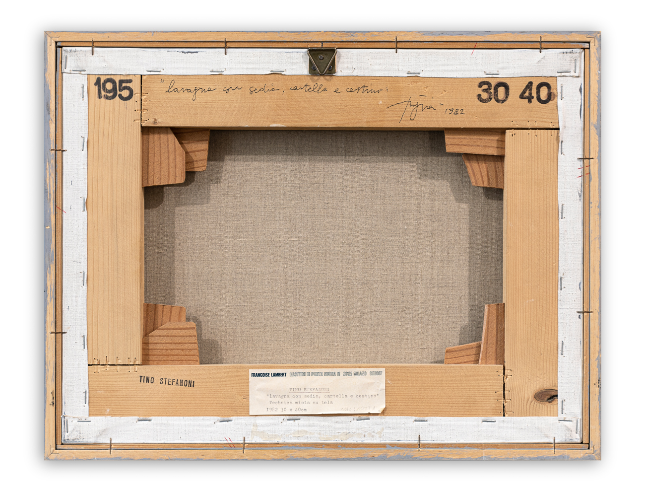 TINO STEFANONI (1937-2017) - Lavagna con sedia, cartella e cestino (Elenco di cose 195), 1982