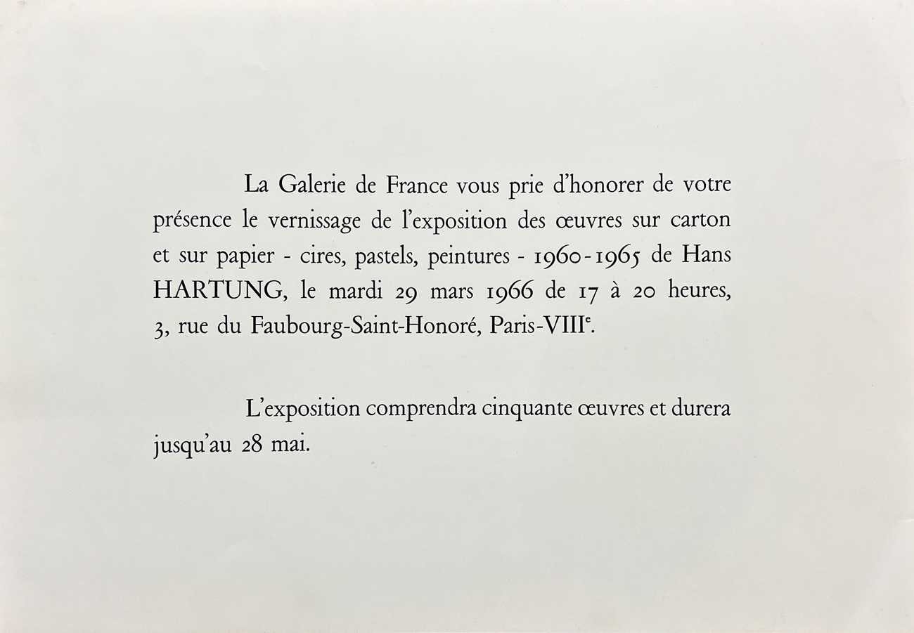 Invito realizzato in occasione della mostra tenutasi presso la Galerie de France, Parigi, con una xilografia tratta da una pittura su cartone P 97 del 1961