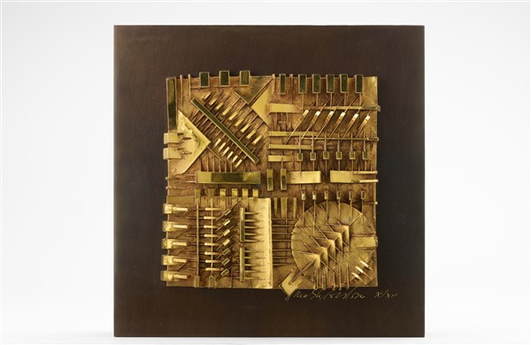 Arnaldo Pomodoro "Tablet of signs II per Montefluos" 1985 bronzo dorato, ottone