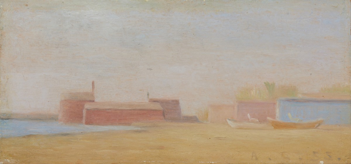 CALDERARA ANTONIO (1903 - 1978) PAESAGGIO A SAN REMO, 1955. olio su tavola. Cm 14,00 x 6,70. firma