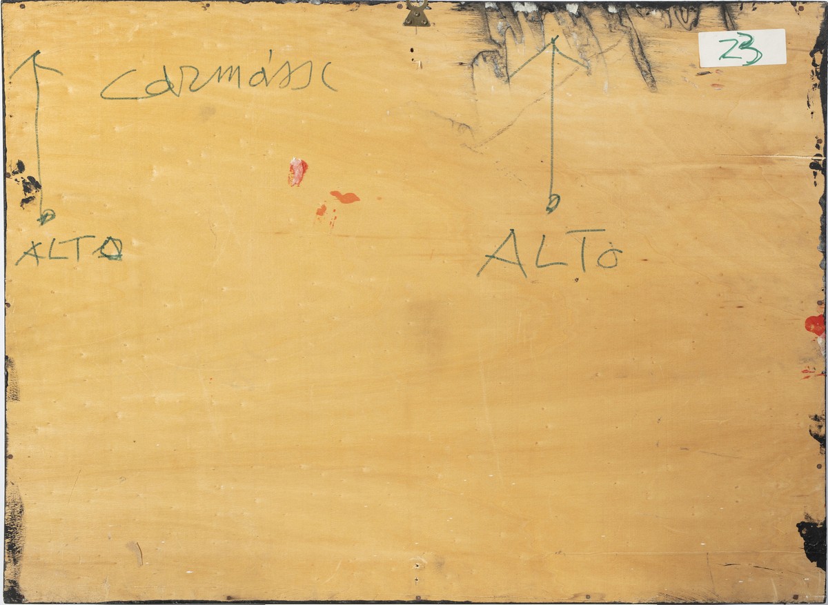 CARMASSI ARTURO (1925 - 2015) HOT FIVE BAND, 1994. rilievo, gesso, sabbia e tecnica mista su legno. Cm 84,00 x 63,00 x 12,00. sul retro: firma