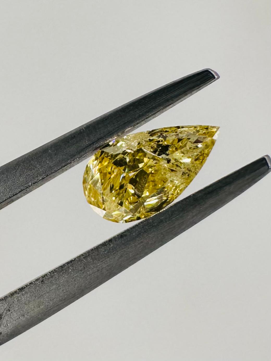 DIAMANTE FANCY COLOR 0,34 CARATI COLORE GIALLO INTENSO - PUREZZA I2 - TAGLIO PERA - CERTIFICATO GEMMOLOGICO MAROZ DIAMONDS LTD MEMBRO ISRAEL DIAMOND EXCHANGE - NUMERO INCISO AL LASER NELLA CORONA - BB40301-1-LC