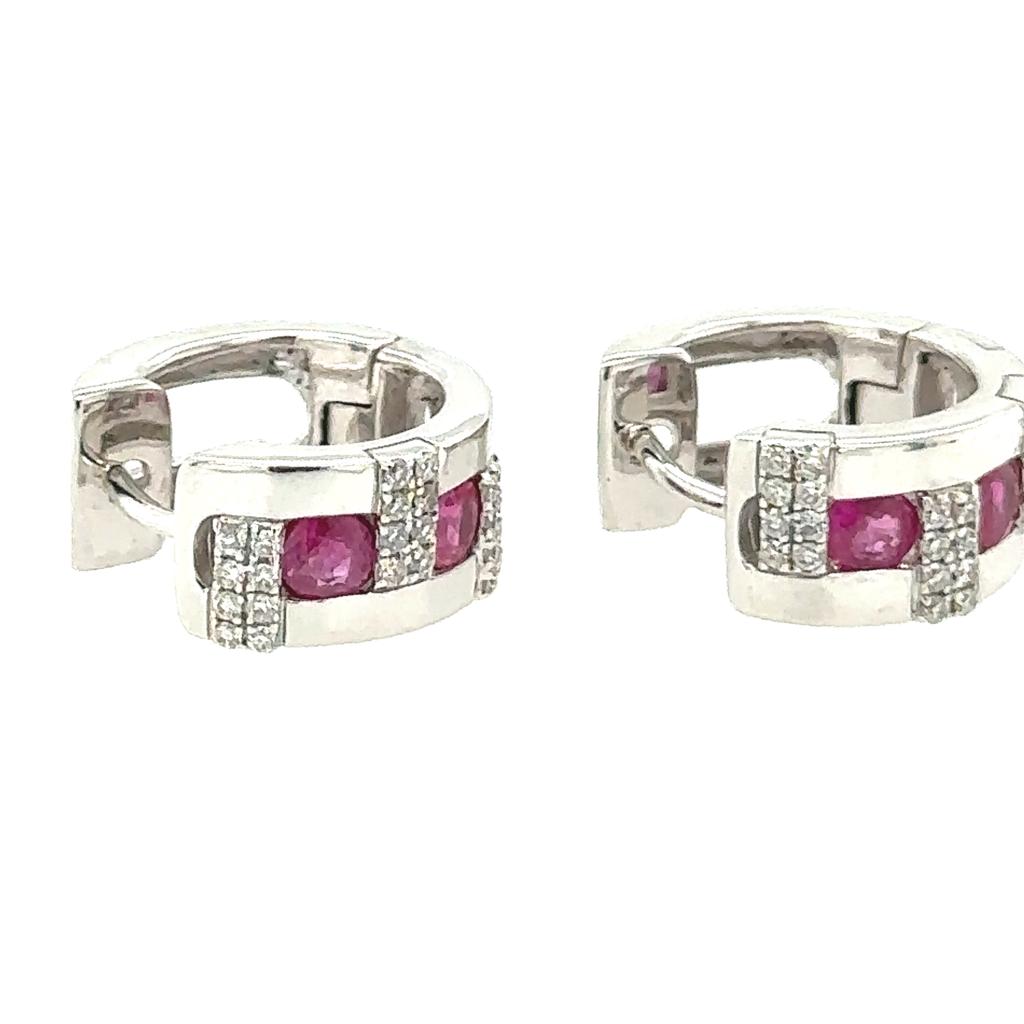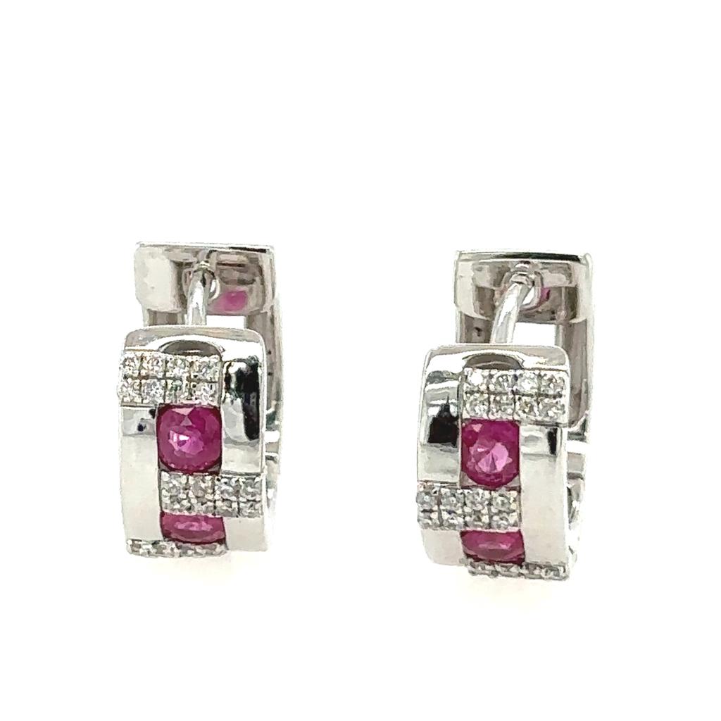 ORECCHINI IN ORO BIANCO 14K 7.07 GR CON DIAMANTI PER 0.26 CARATI COLORE E-F - PUREZZA SI1-2 E RUBINI PER 0.72 CARATI - CERTIFICATO GEMMOLOGICO MAROZ DIAMONDS LTD MEMBRO ISRAEL DIAMOND EXCHANGE - AI30511