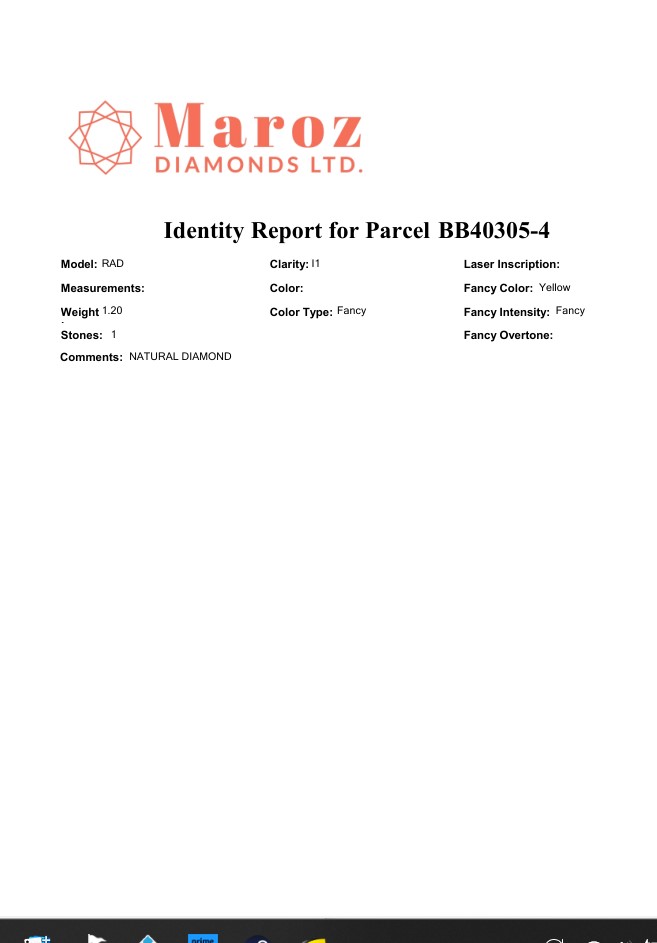 DIAMANTE FANCY COLOR 1,2 CARATI COLORE Fancy Deep GIALLO - PUREZZA I1 - TAGLIO RADIANTE - CERTIFICATO GEMMOLOGICO MAROZ DIAMONDS LTD MEMBRO ISRAEL DIAMOND EXCHANGE - BB40305-4