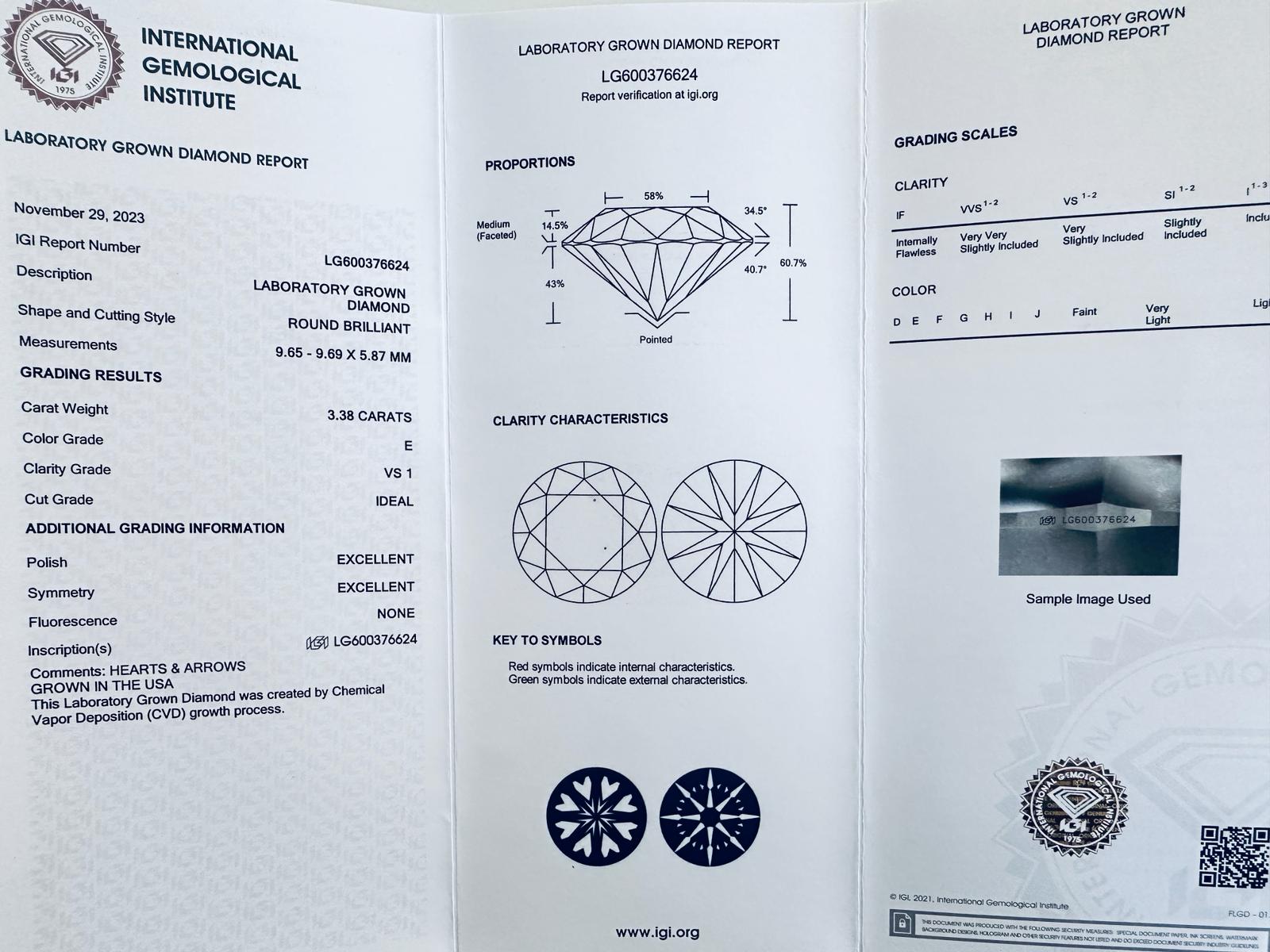 Lot 65 | DIAMANTE 3,38 CT E - VS1 - LAB GROWN - IGI - LG40204