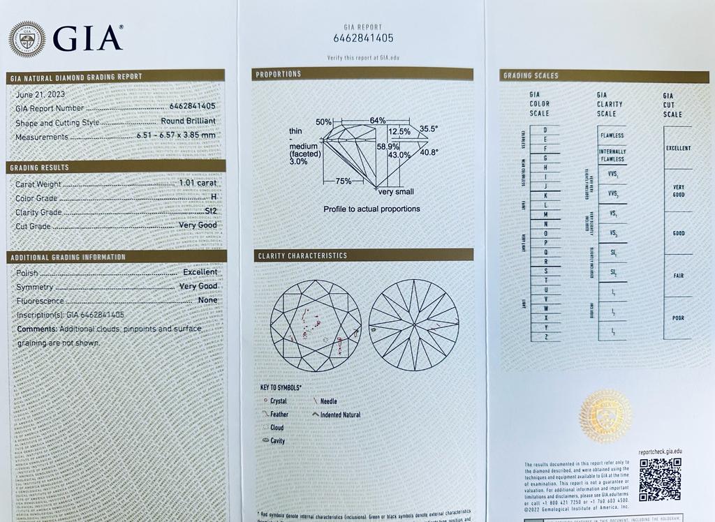 DIAMANTE 1,01 CT H - SI2 - GIA - MA30802