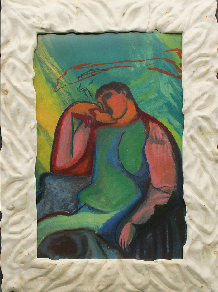 SANDRO CHIA, anni 2000, monotipo tempera su cartoncino, dim 100x67 senza cornice d'artista , dim 130x90 con cornice d'artista, opera con autentica. Al verso: timbro d'artista a sinistra. Opera con cornice d'artista.