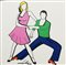MARCO LODOLA, "Due ballerini", anni 2000, acrilico su tela, dim 100x100, autentica su foto dell'artista, al fronte: firma