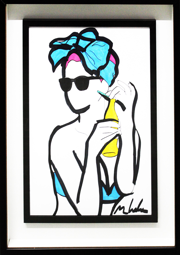MARCO LODOLA, "Donna che stappa una bibita", anni 2000, tecnica mista su cartoncino, dim 40x30. Autentica su foto dell'artista. Al fronte: firma in basso a sinistra. Opera protetta da teca in plexiglass e incorniciata. Opera con cornice.
