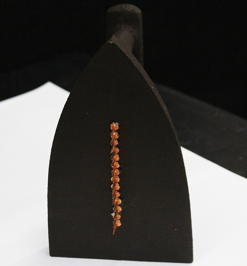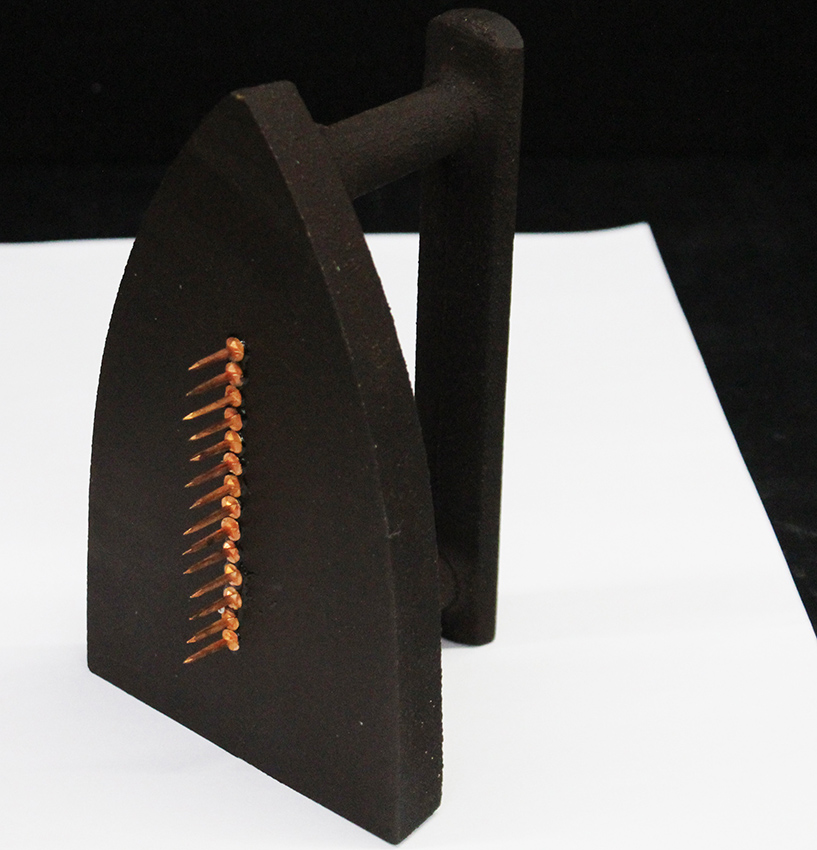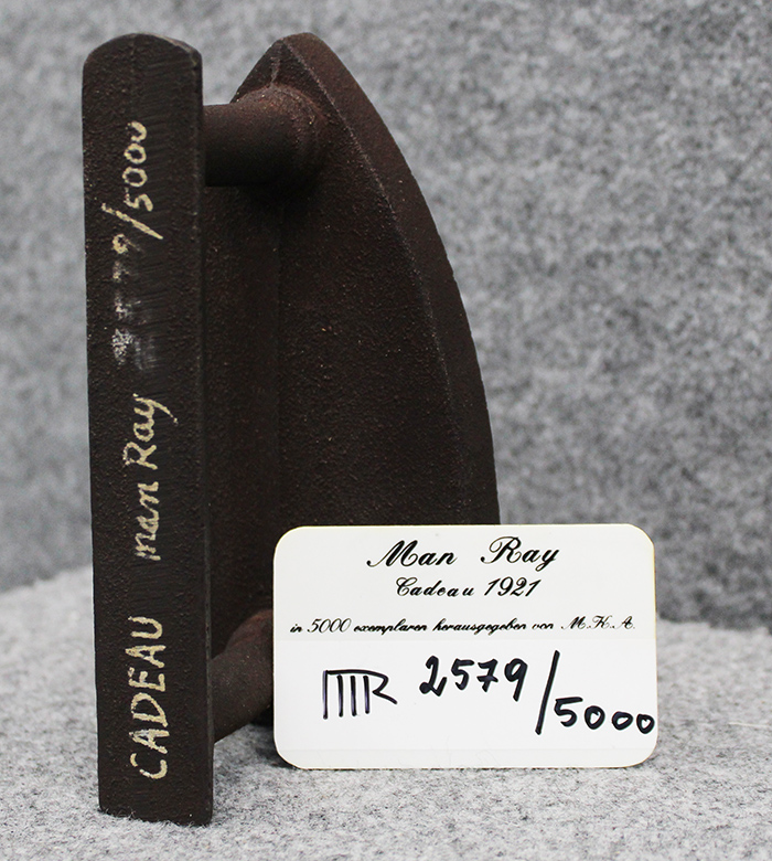 MAN RAY, "Cadeau", Anni '70, Ferro da stiro metallico con chiodi saldati sulla piastra, Dim. 17x10x9, Sul manico: Esemplare n° 2579/5000, titolo, firma