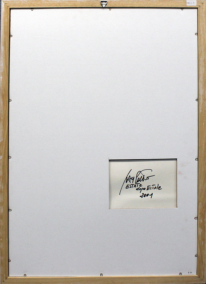 IVAN CATTANEO, "Estate dopo estate", 2001, tecnica mista e collage su cartoncino, dim 70x50, opera con autentica. Al fronte: titolo tratto da una scritta in collage. Al verso: firma, titolo, anno. Opera con cornice.