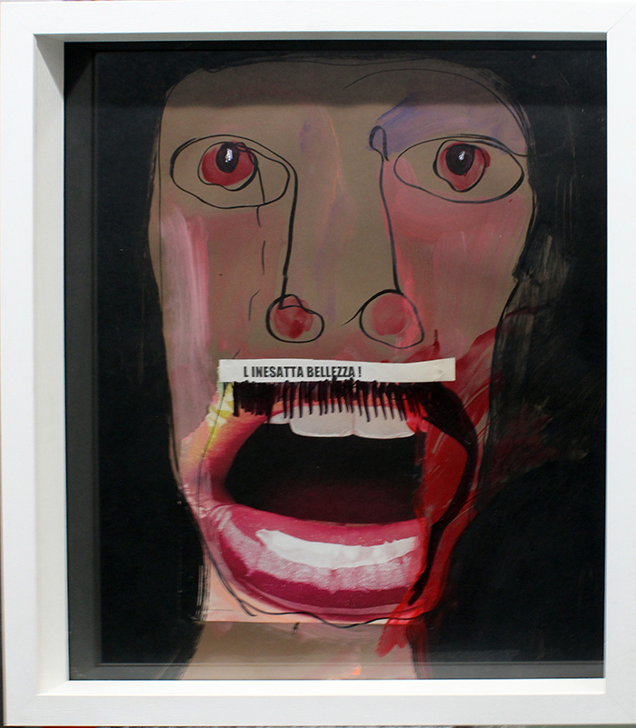 IVAN CATTANEO, "L'inesatta bellezza", 2006, tecnica mista e collage su cartoncino, dim 60x50, opera con autentica. Al fronte: titolo tratto da una scritta in collage. Al verso: firma, titolo, anno. Opera con cornice.