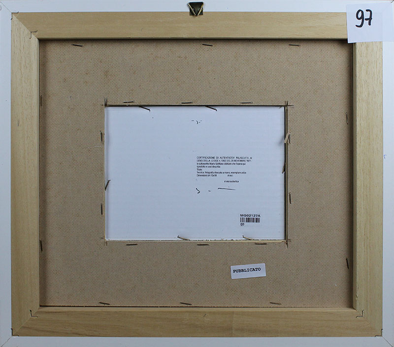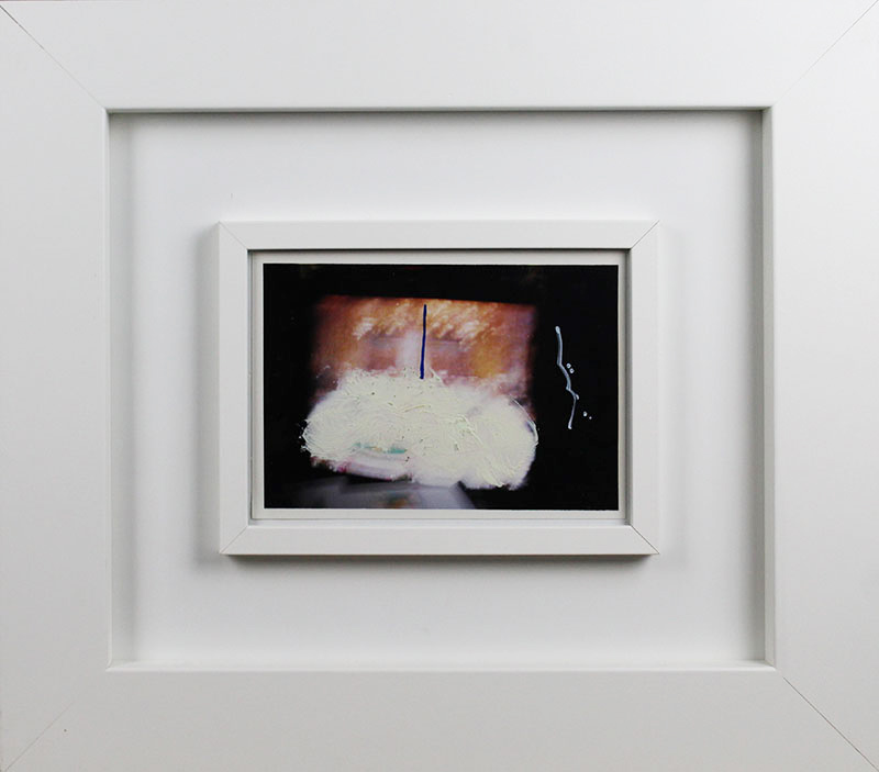 MARIO SCHIFANO, La linea blu, 1990-97, Foto ritoccata a smalto, Esemplare unico, Dim. 13x18, Opera archiviata presso la Fondazione Mario Schifano " Archivio Generale dell' Opere di Mario Schifano " con n° archivio: F90-97/4318, il 28 giugno 2007, Opera pubblicata sul catalogo " Mario Schifano fotografie ritoccate " a pag.409, volume II, Al verso: firma "Schifano", Opera con cornice