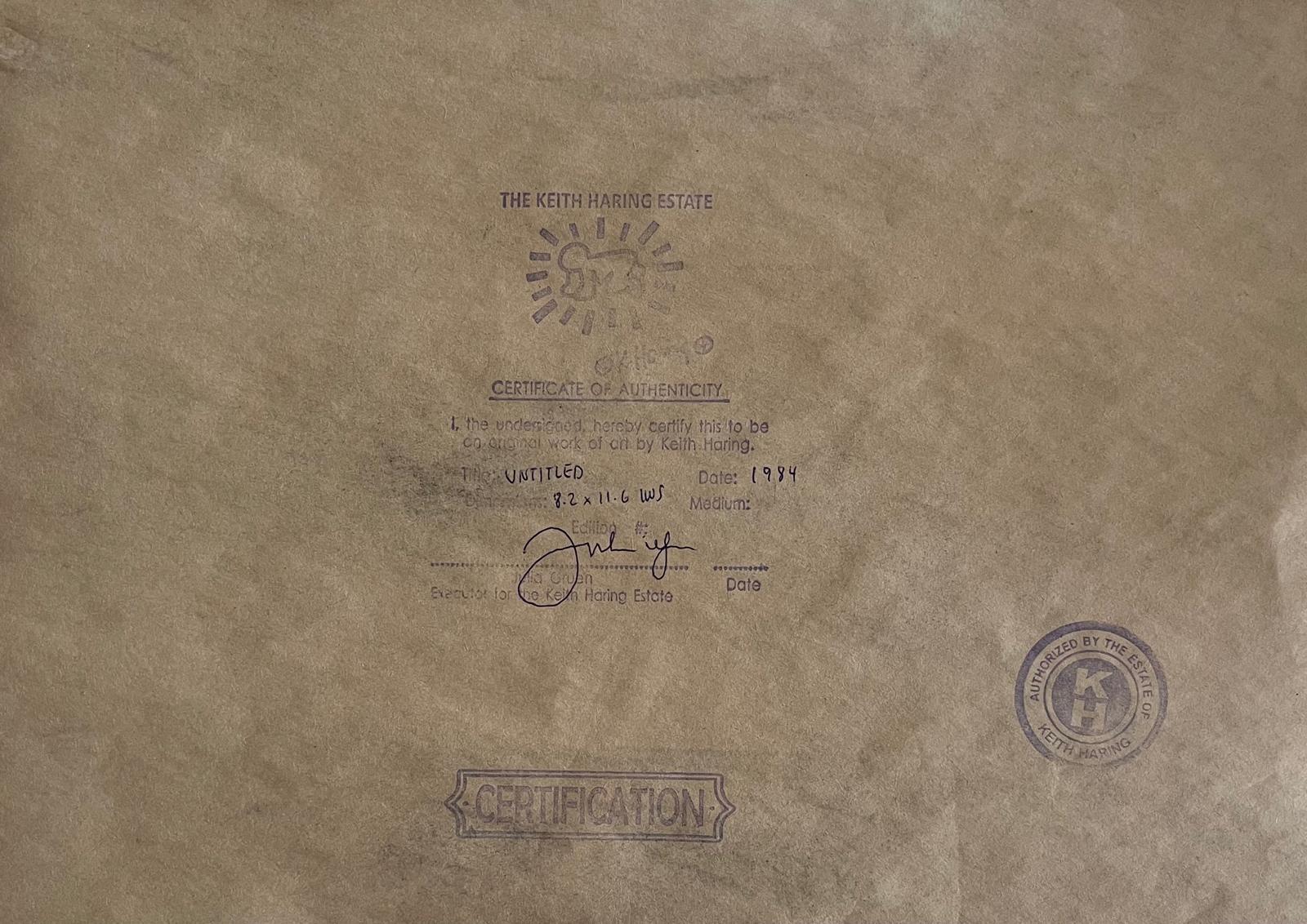 Certificato di autenticità ‘The Keith Haring Estate’ al verso