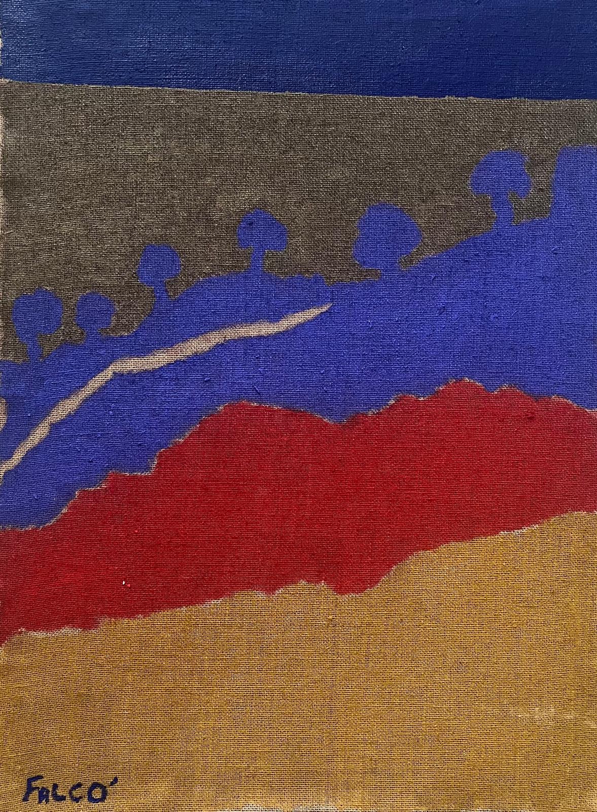 Tecnica mista su juta applicata su tavola, cm 80x60