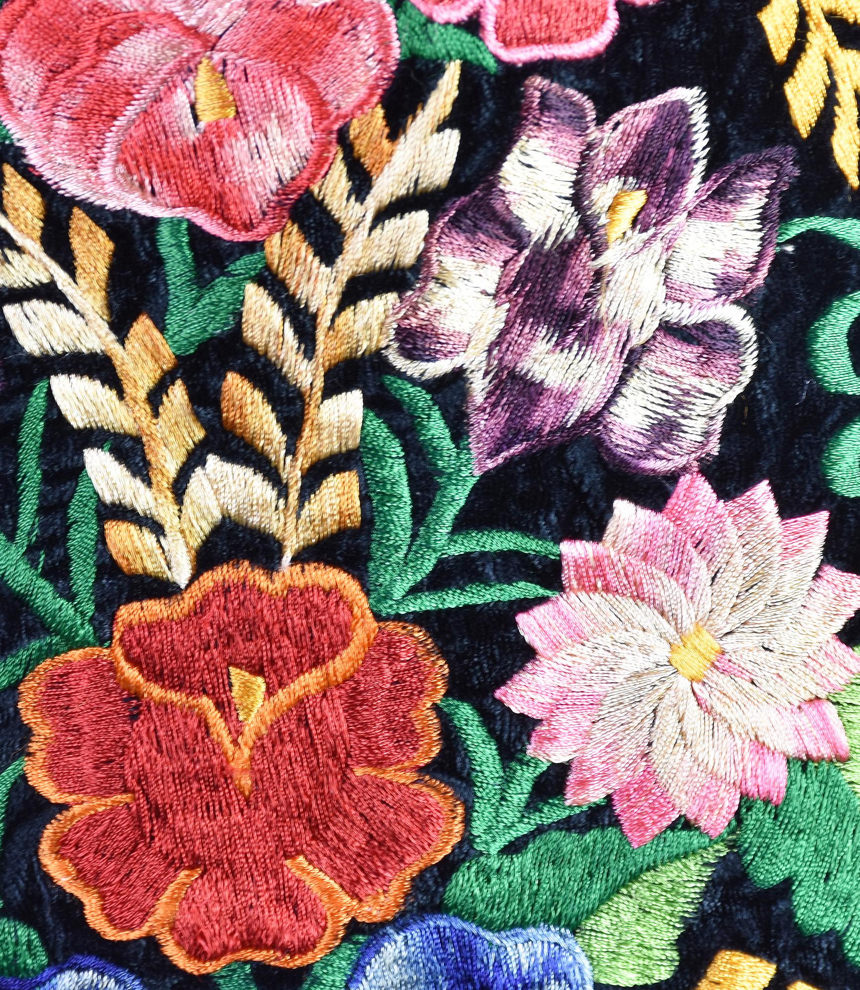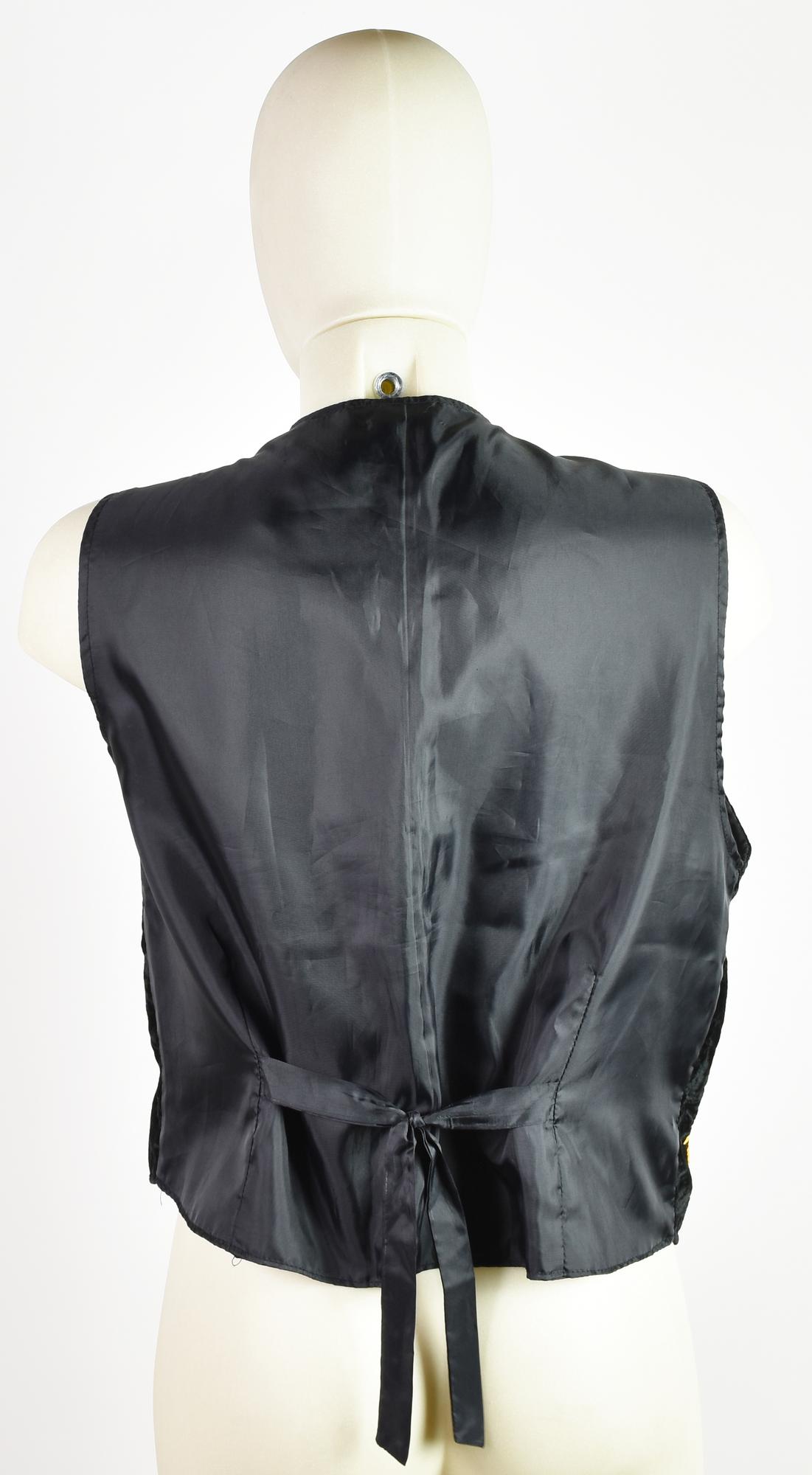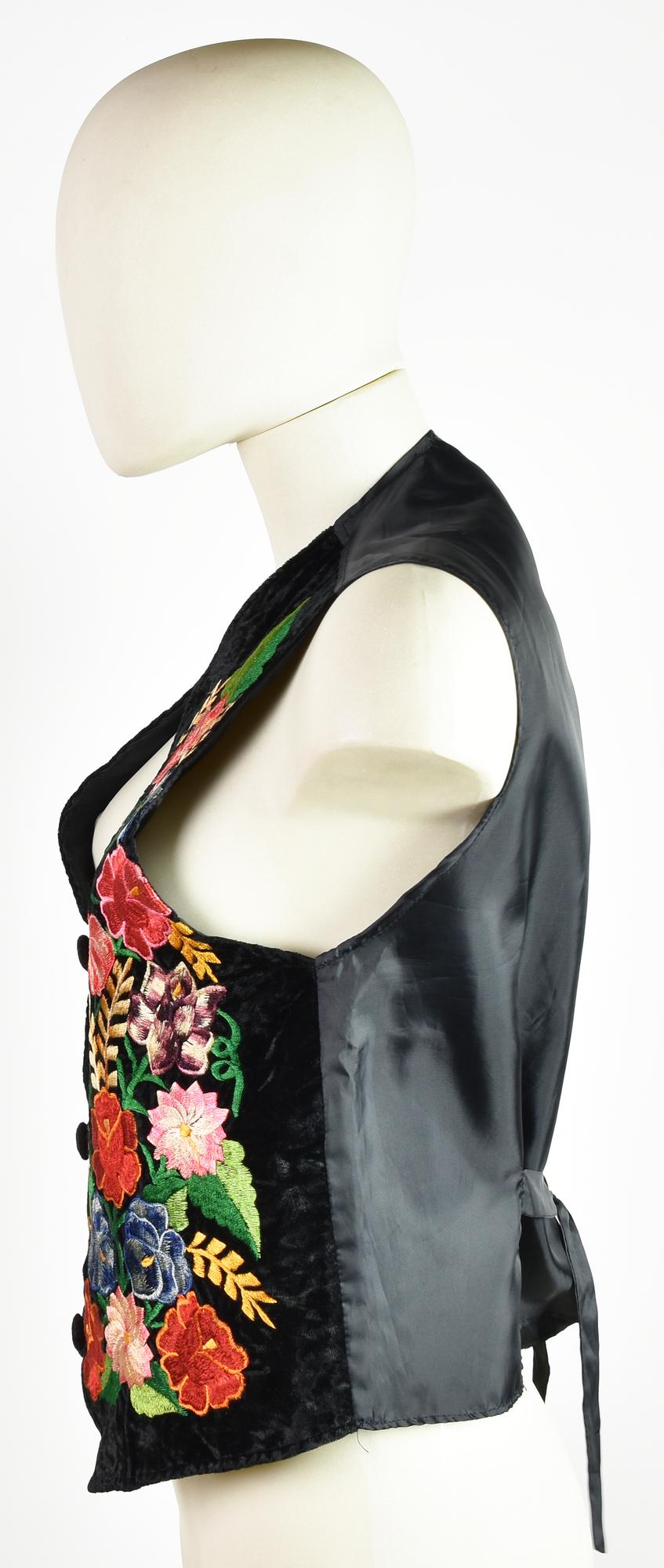 Gilet in velluto con ricamo floreale e taschino interno. Anni '80. Taglia non indicata. Perfettamente conservato.