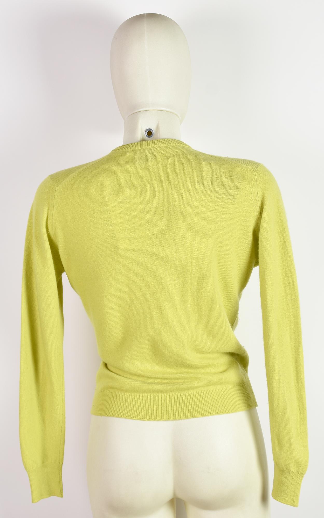 Golfino in cashmere a girocollo color verde acido. Taglia M. Anni '80. Prodotto in Scozia. Ben conservato.