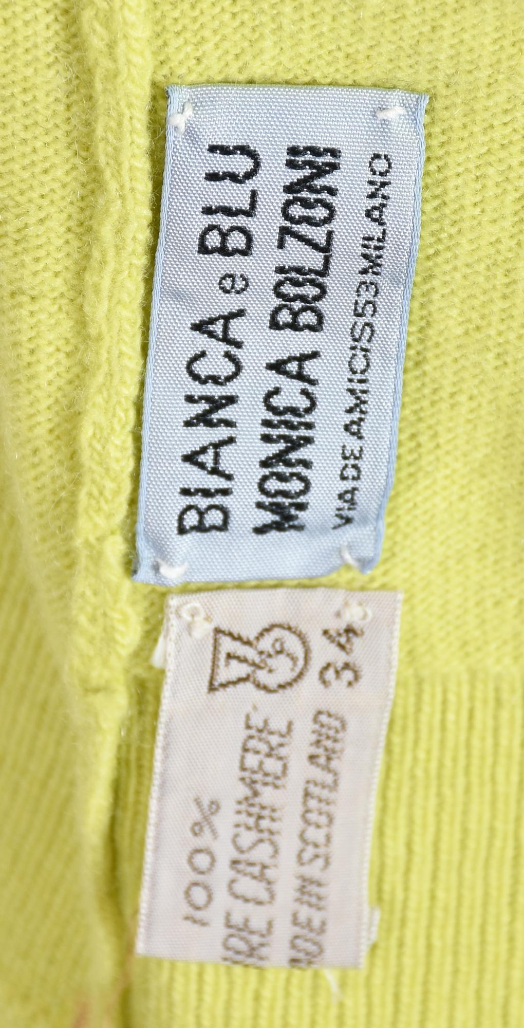 Crew neck cashmere sweater in acid green. Size M. Made in Scotland in the 80s. Well preserved.