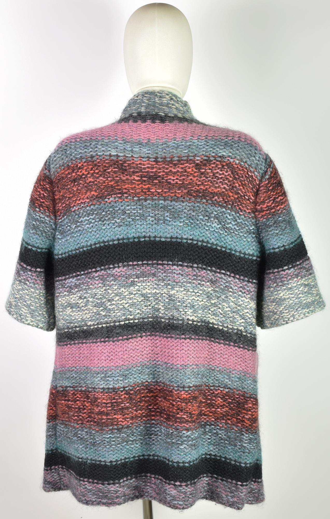 Lungo cardigan multicolor lavorato a maglia. Taglia TM (Tall medium). Prodotto in Francia. Eccellente, probabilmente mai indossato, ancora con cartellino.