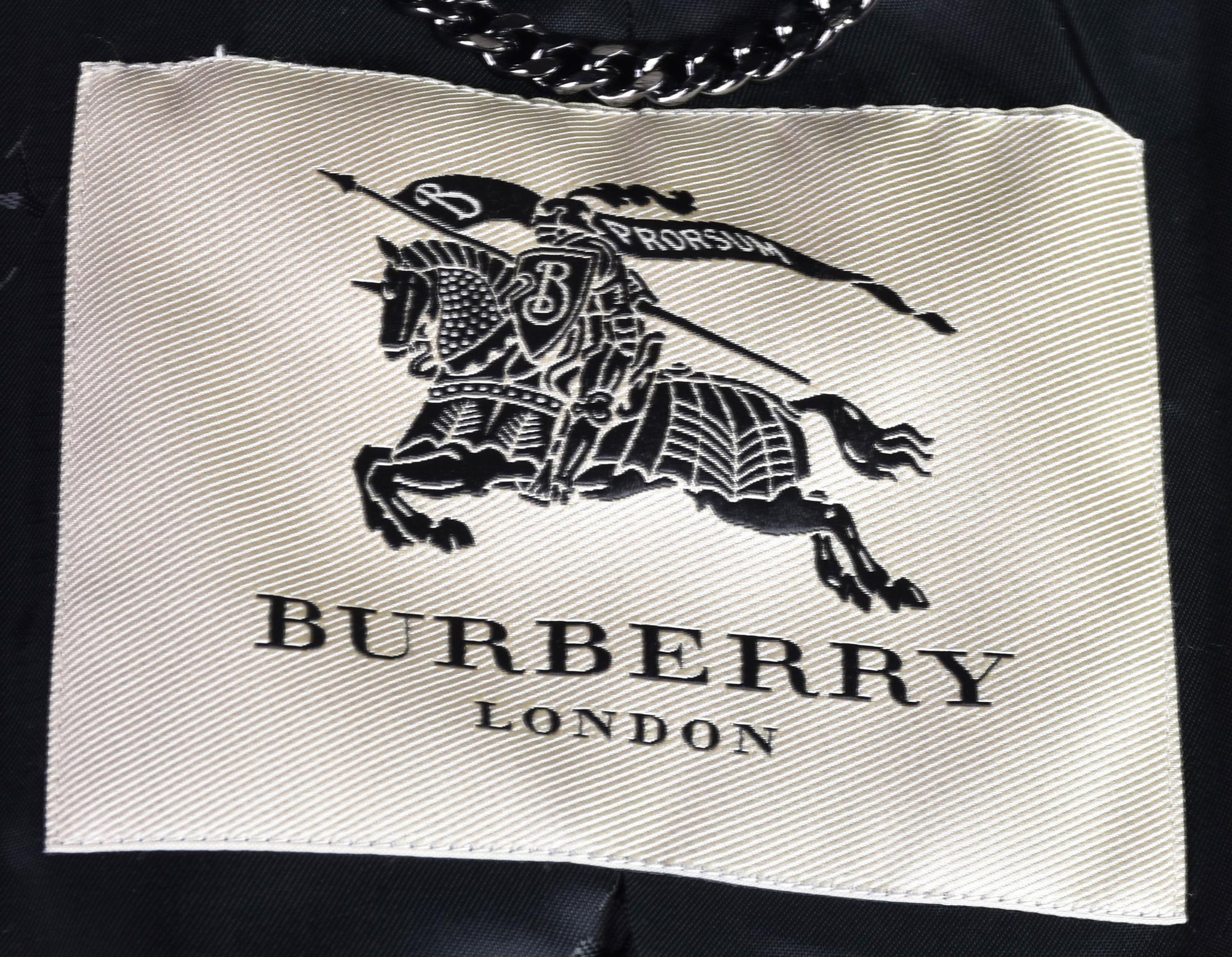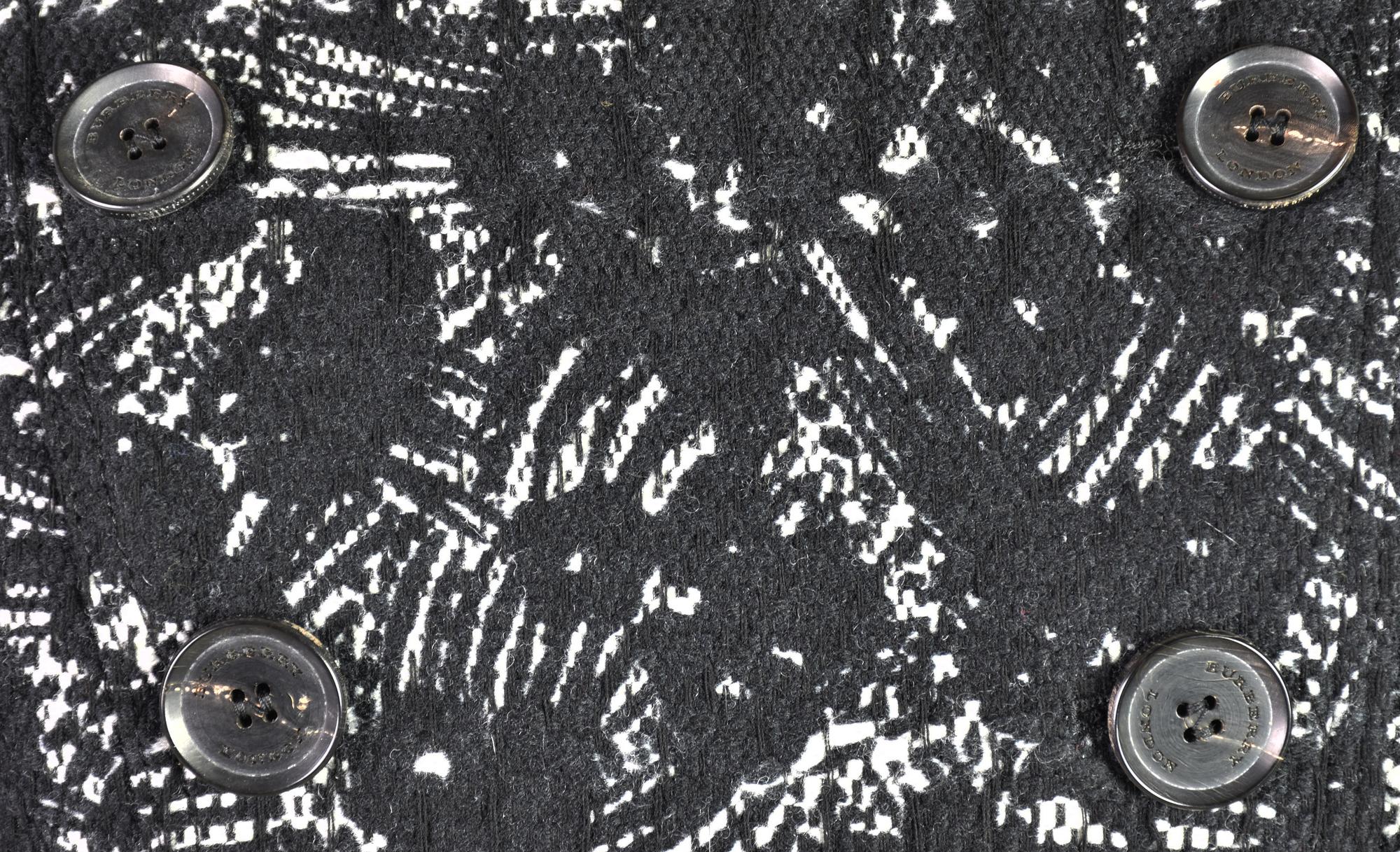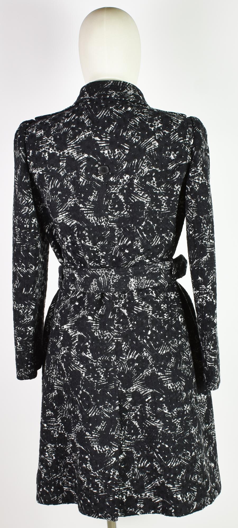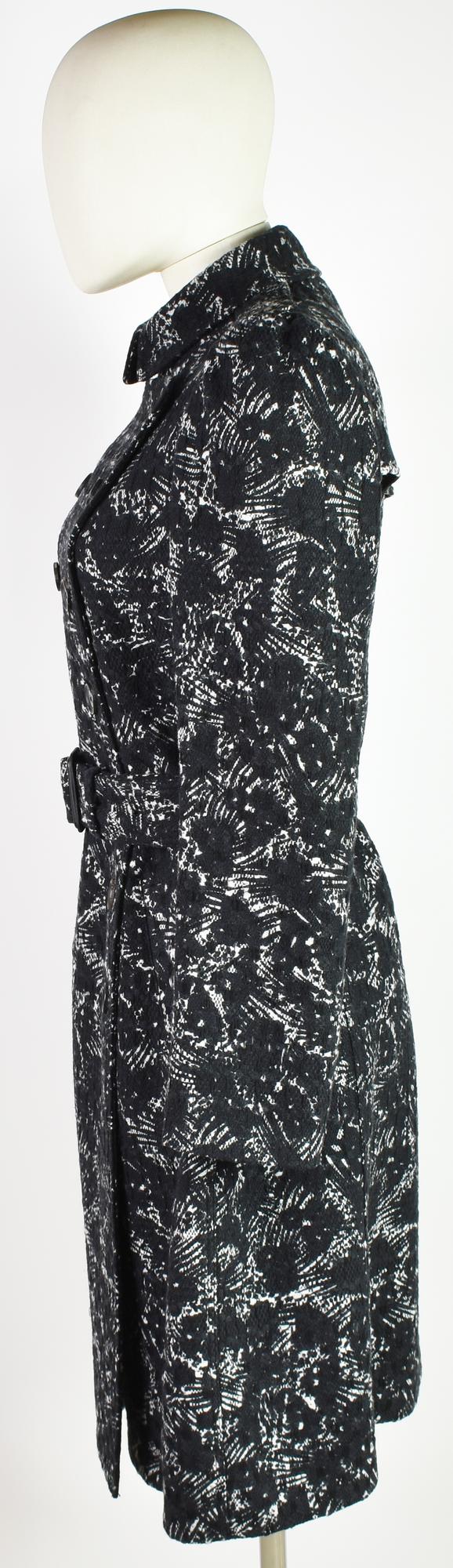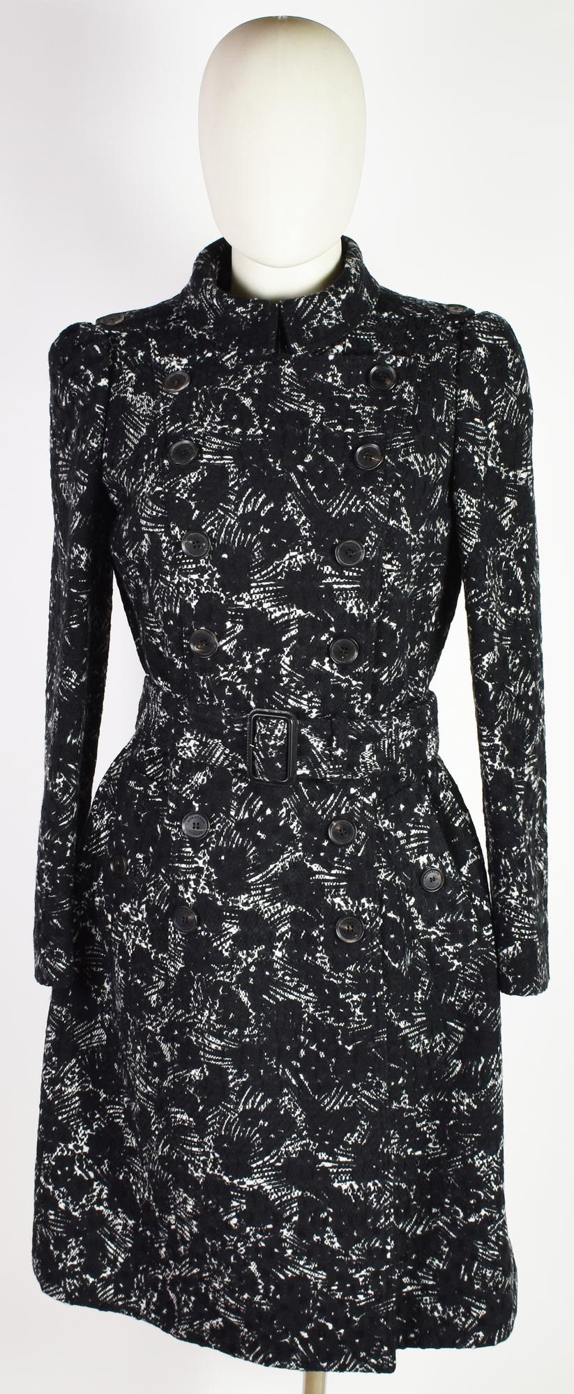 Women's double-breasted wool coat with waist belt and flap pockets. Size 42 IT. Offered with original Burberry plastic coat cover. Made in Poland. Excellent condition.