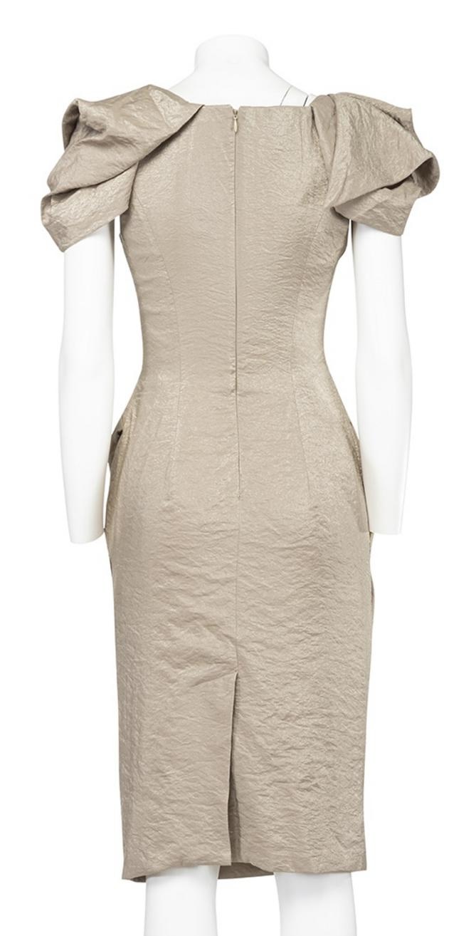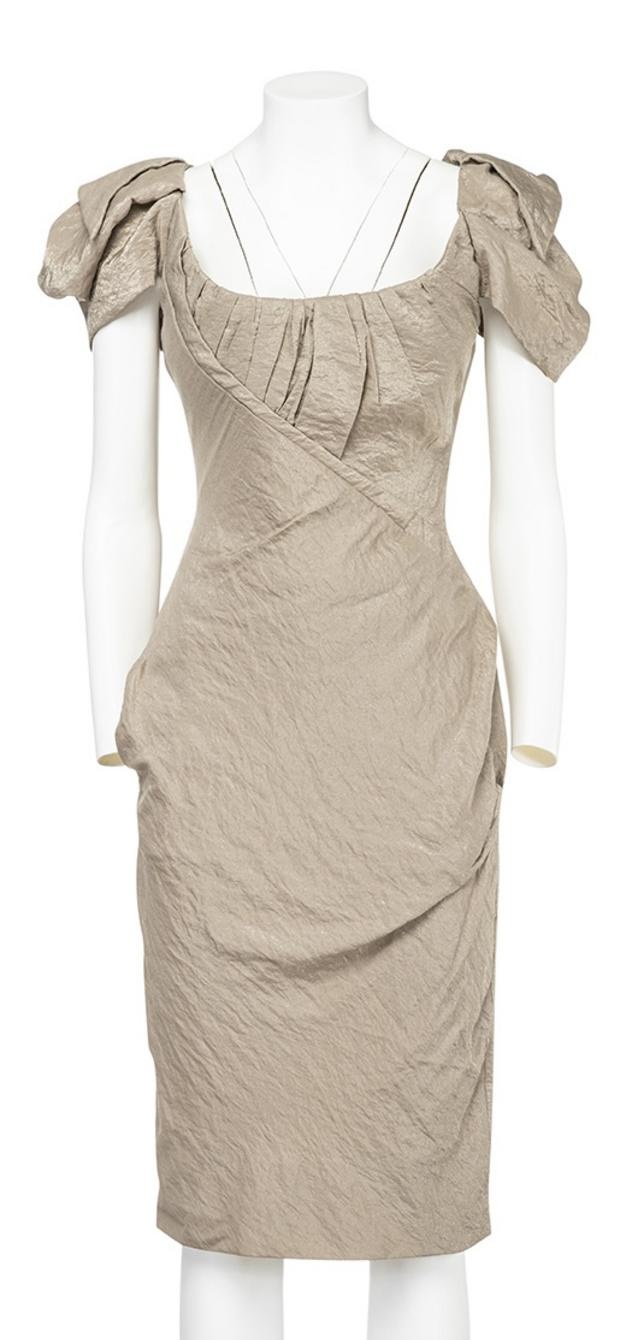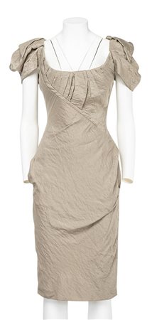 Iconico abito con effetto stropicciato della linea Red Label della collezione Autunno Inverno 2009. Corsetto interno drappeggiato con chiusura a zip. 70% viscosa, 30% nylon. La taglia e' IT 40. Condizioni Eccellenti.