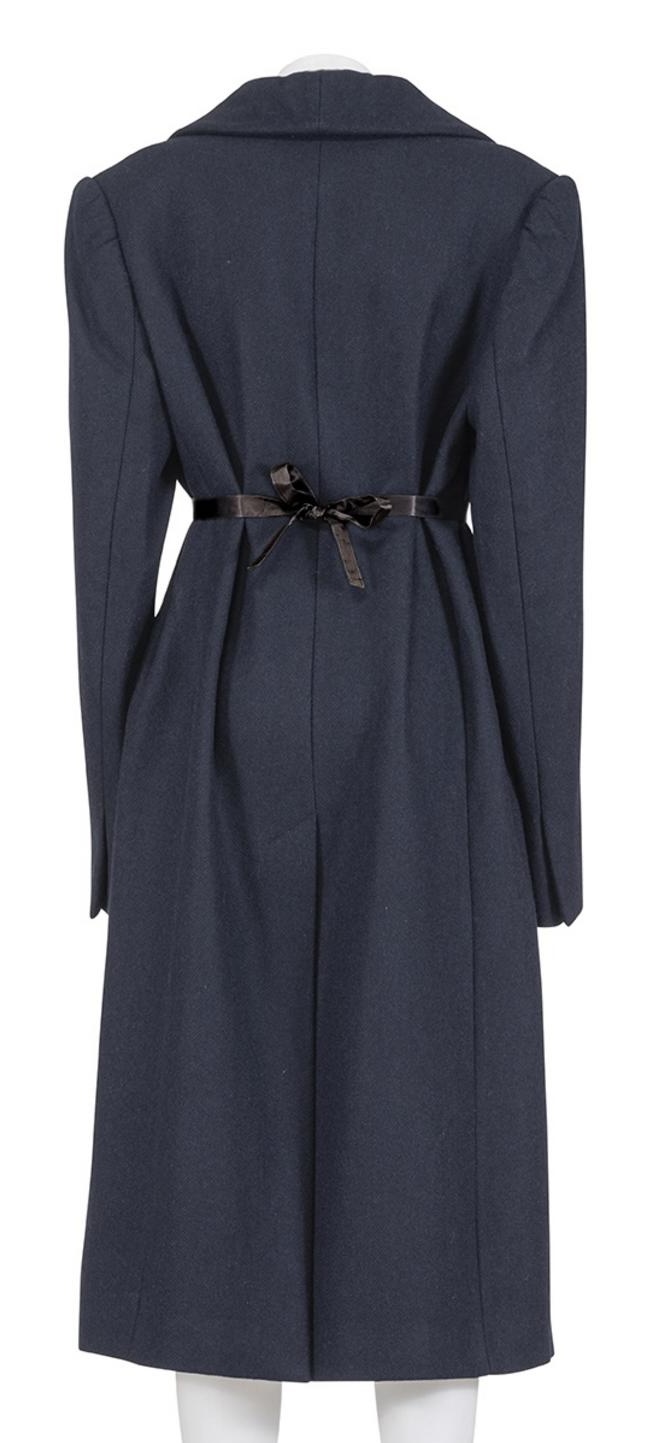 Iconic and rare raw cut wool coat from the Fall Winter 2002 collection. Plastron with satin belt. 100% wool. Size is IT 42. Excellent condition.