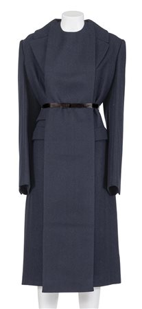 Iconico e raro cappotto in lana a taglio vivo della collezione Autunno Inverno 2002. Plastron con cintura in raso. 100% lana. La taglia e' una IT 42. Eccellente.
