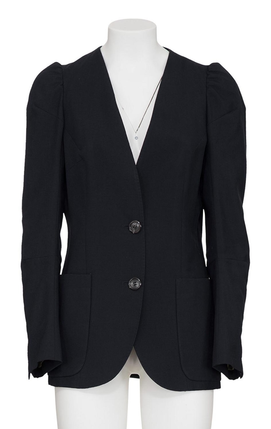 RARE AND ICONIC COLLARLESS JACKET WITH PUFFED SHOULDERS