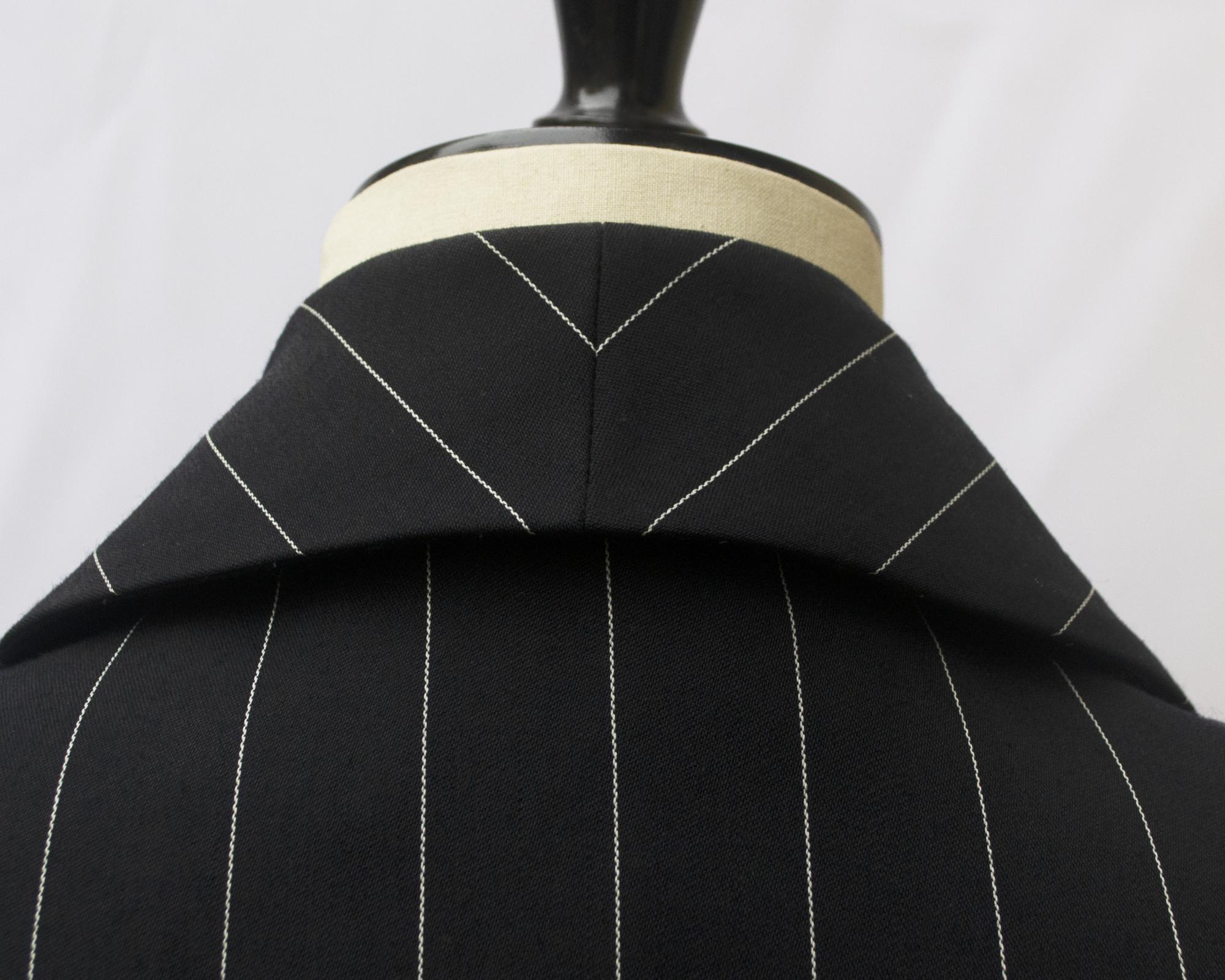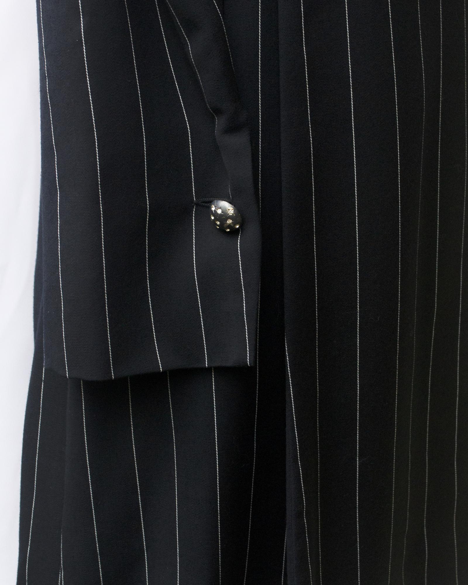 Lined double breasted jacket in pinstripe wool. Revers fully embroidered in swarovski. Made in Italy in the 80s. Jewel buttons. Size IT 42. Perfectly preserved.