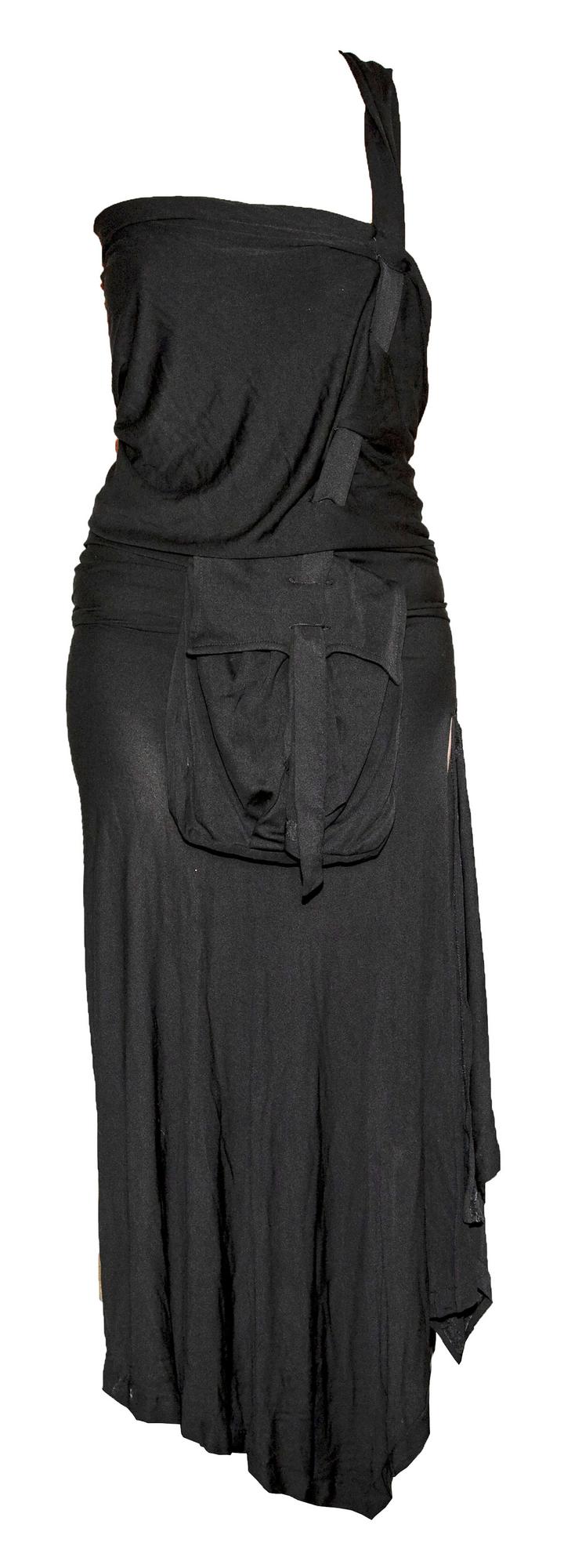 Jean-Paul Gaultier POCKET DRESS DESCRIPTION: Long asymmetrical black rayon...