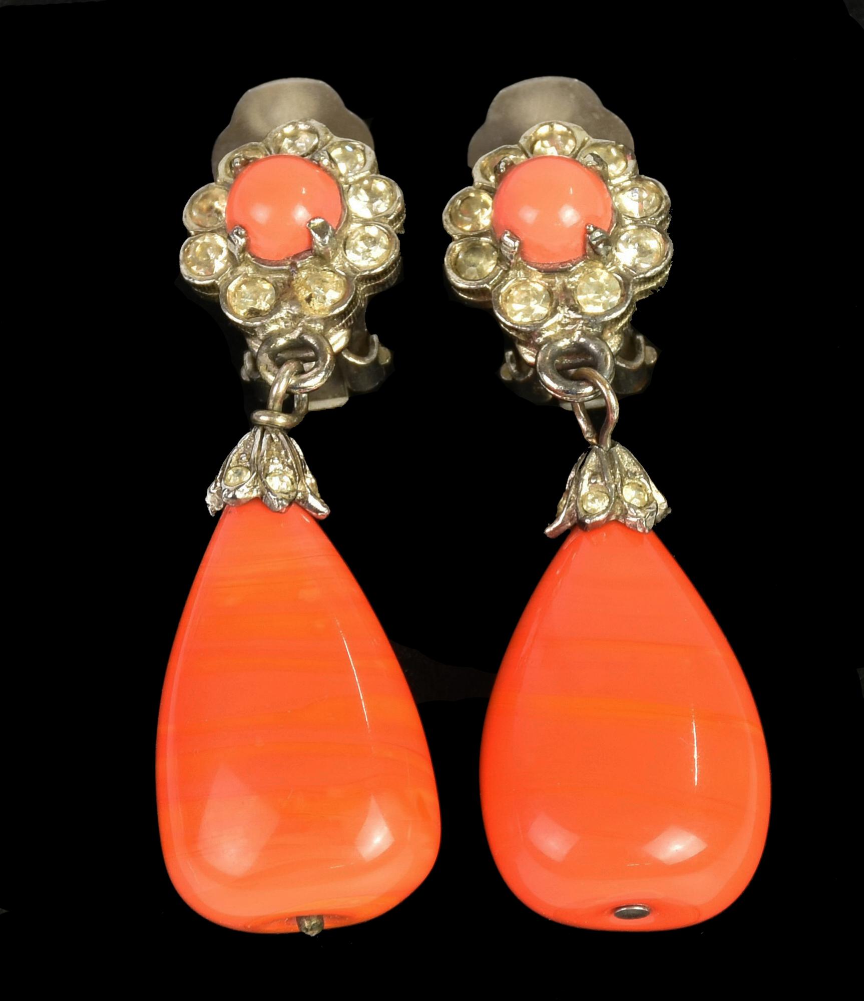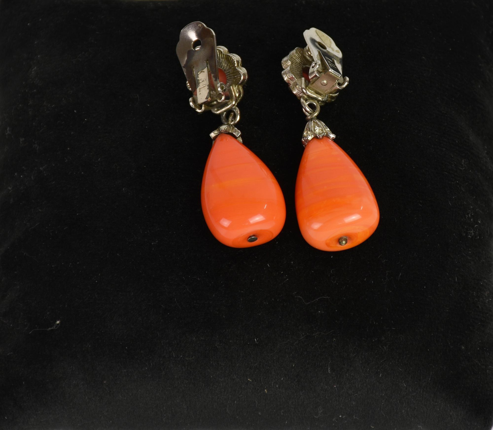 Kanneth Jane Lane EARRINGS DESCRIPTION: Coral glass clip earrings. Well...