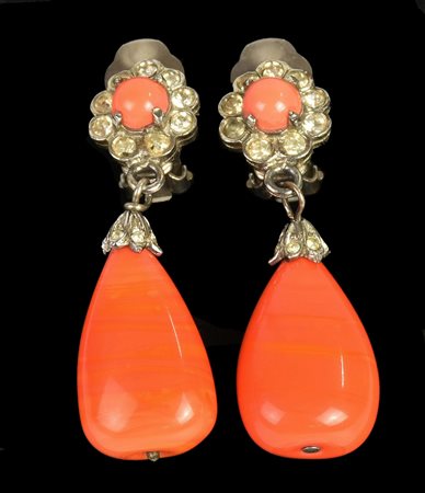Orecchini a clip in vetro color corallo. Ben conservati.