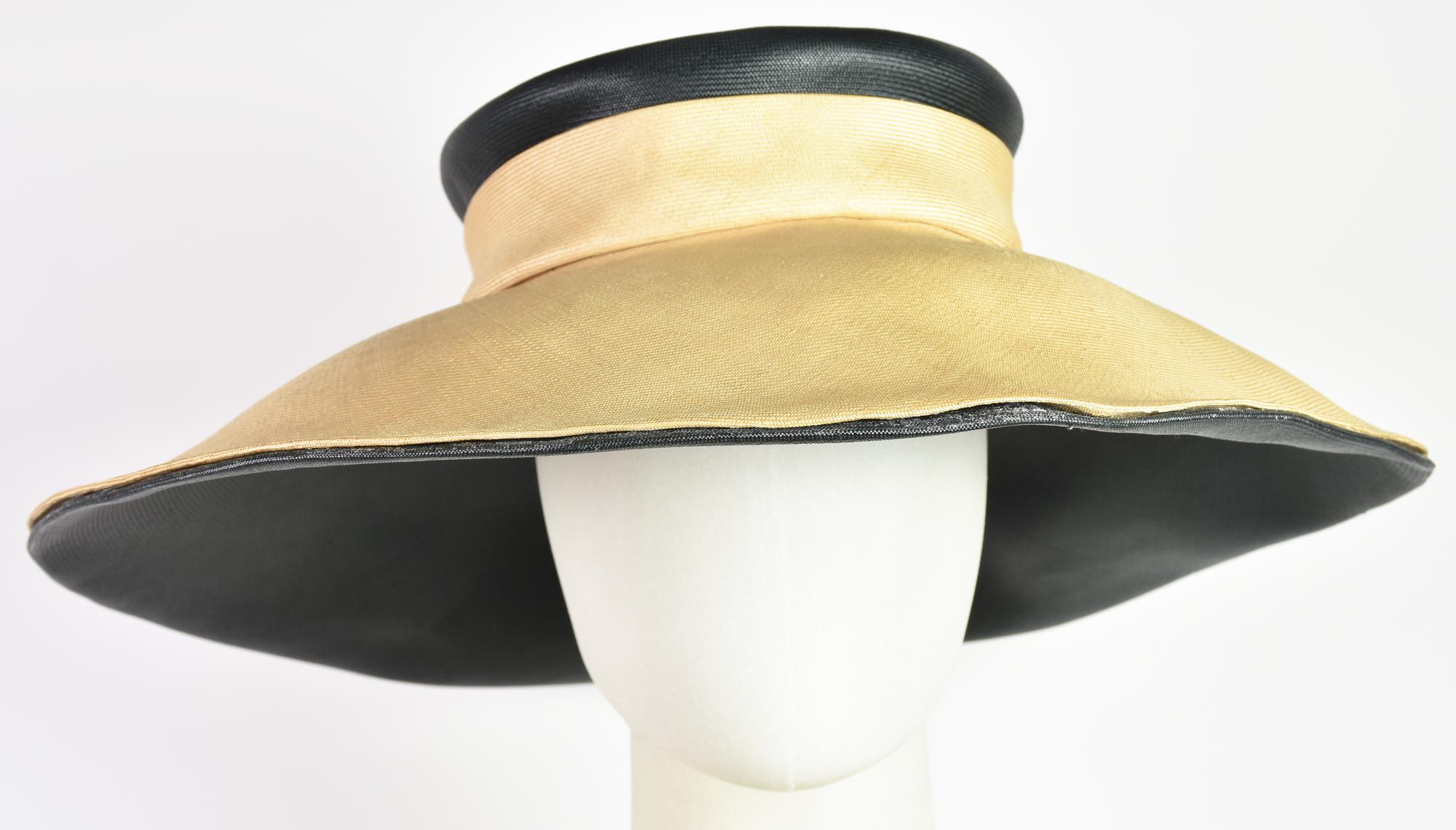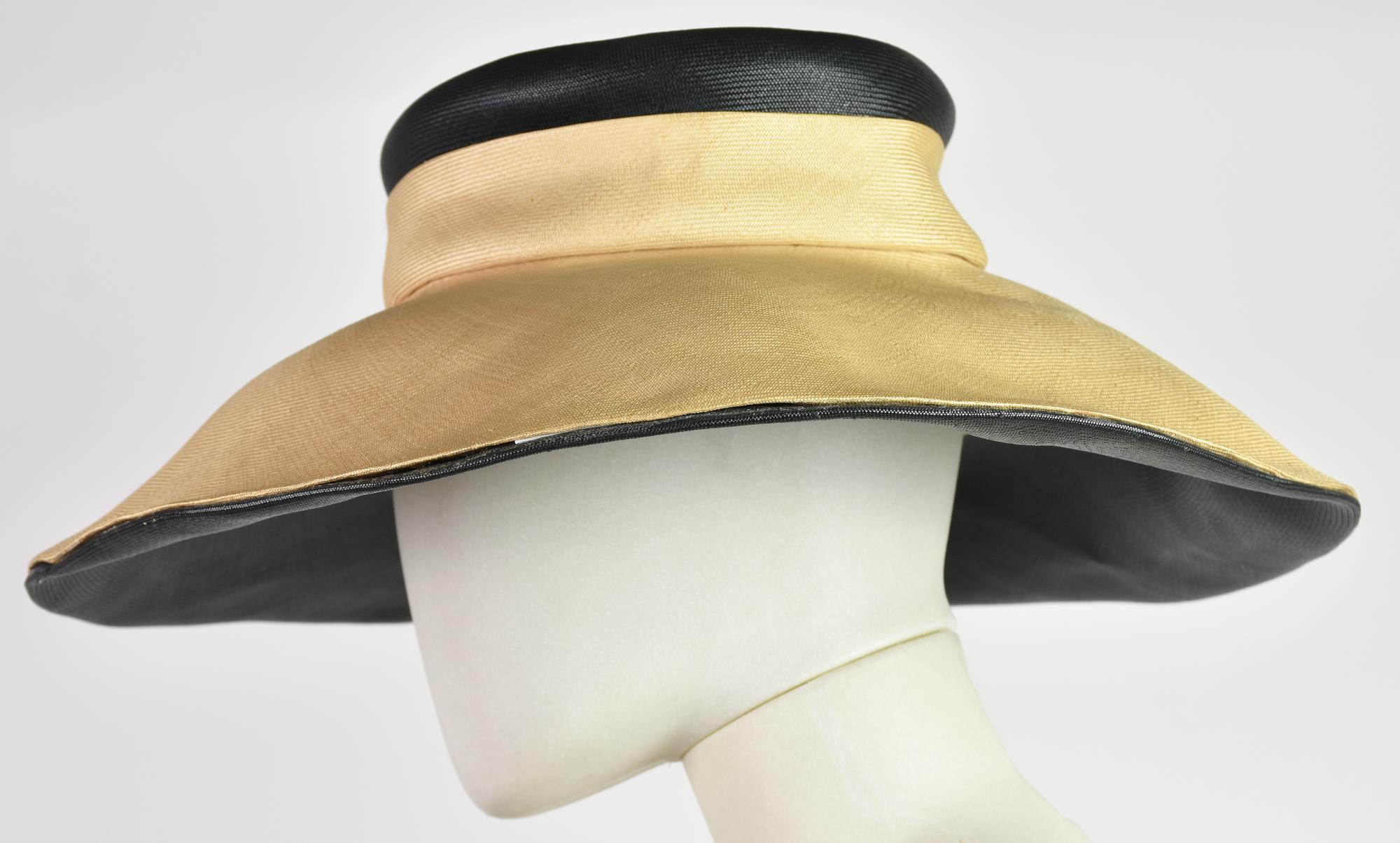 Cappello a tesa larga in paglia, panna e nero. Anni '60. Ben conservato.
