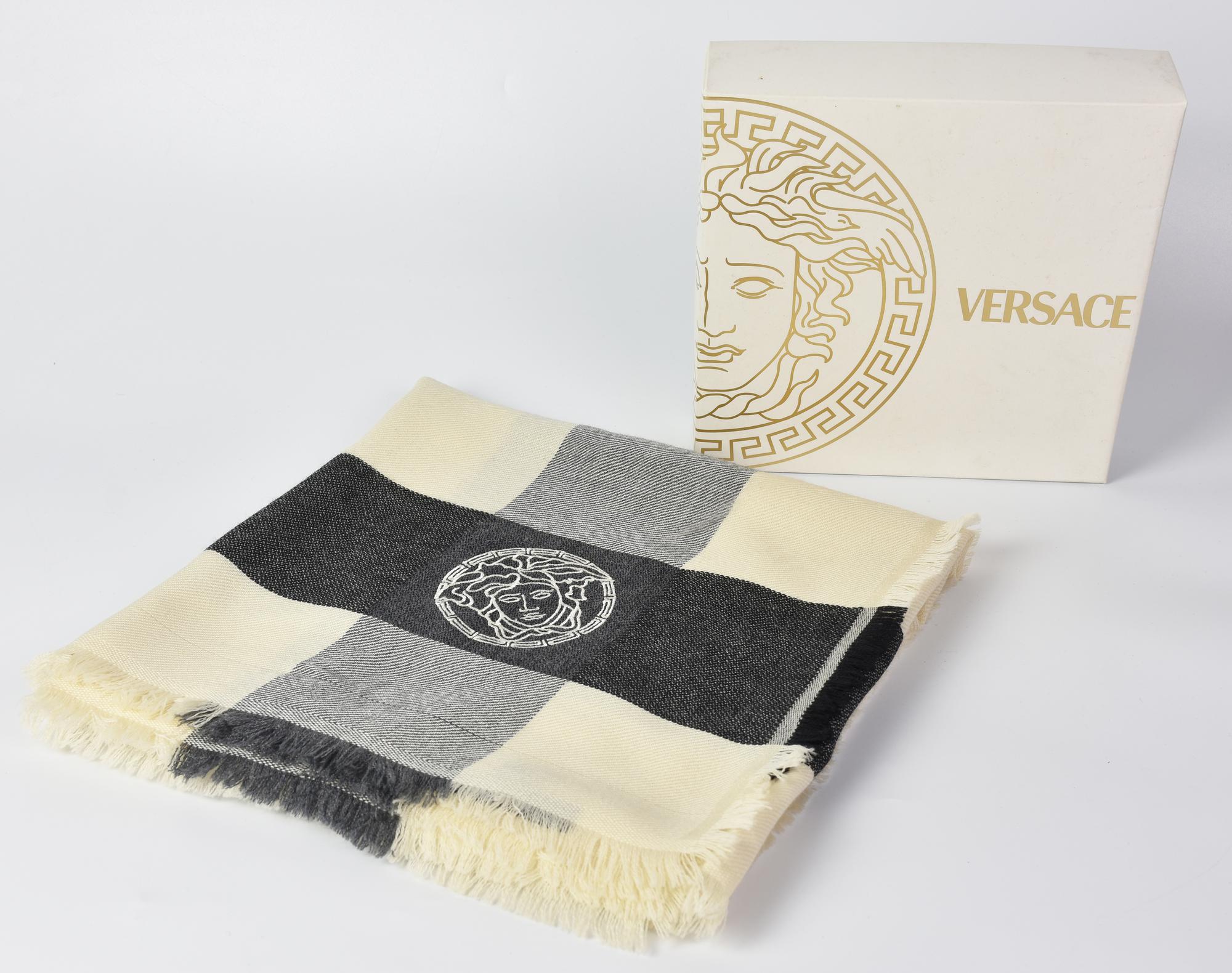 Versace WOOL SCARF DESCRIPTION: Scarf in pure virgin wool embroidered with...