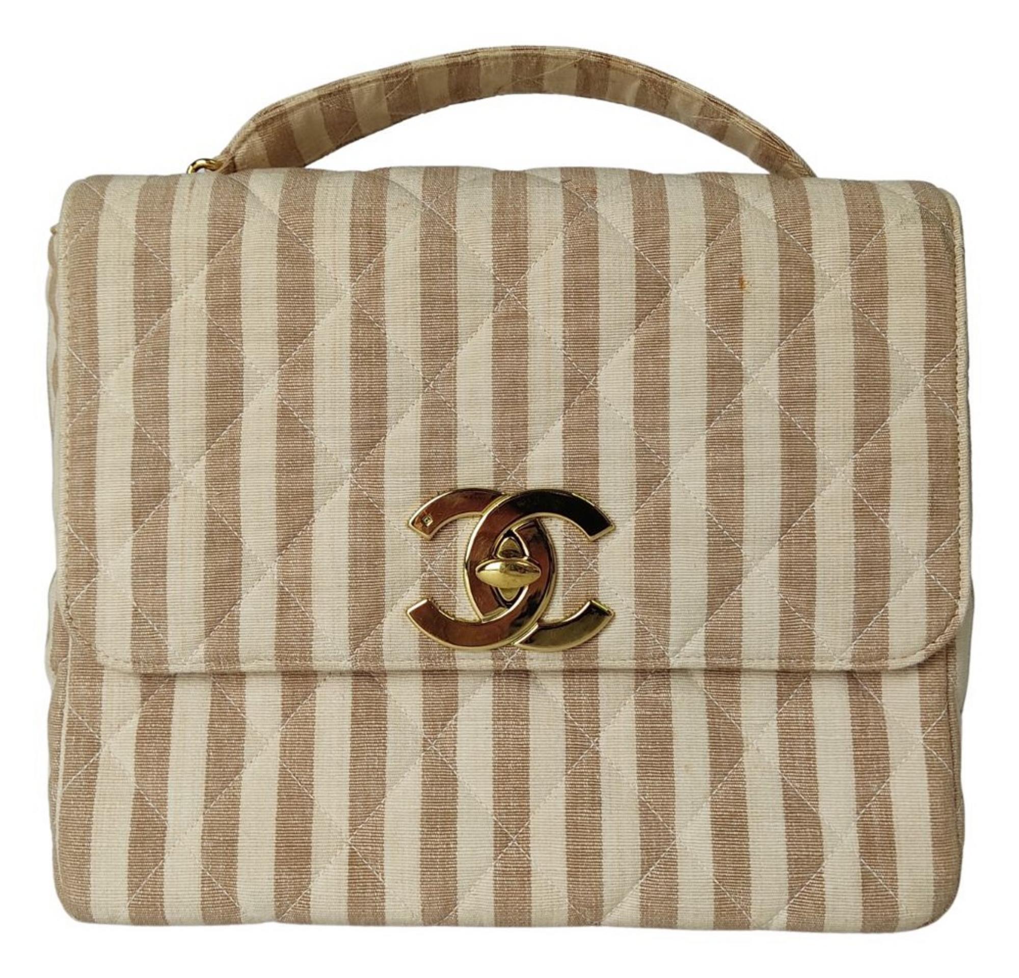 Chanel BORSA A MANO DESCRIPTION: Vintage handbag in beige and ecru' striped...