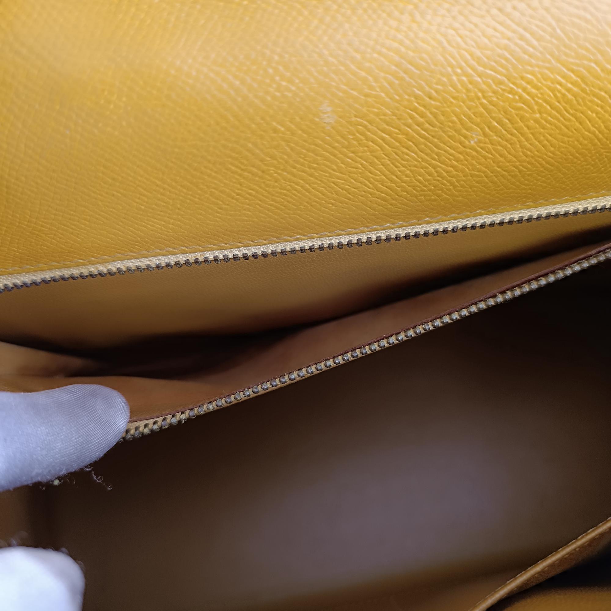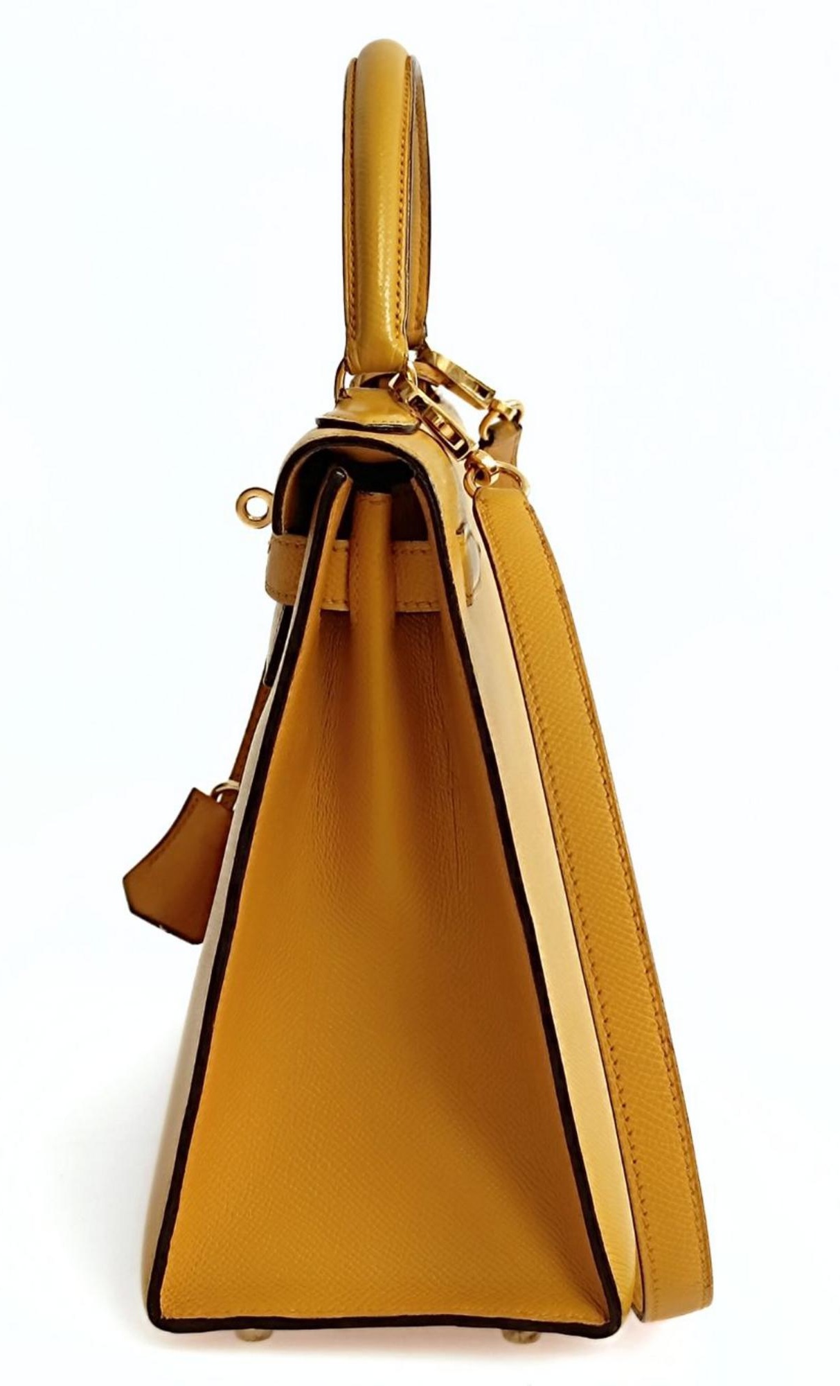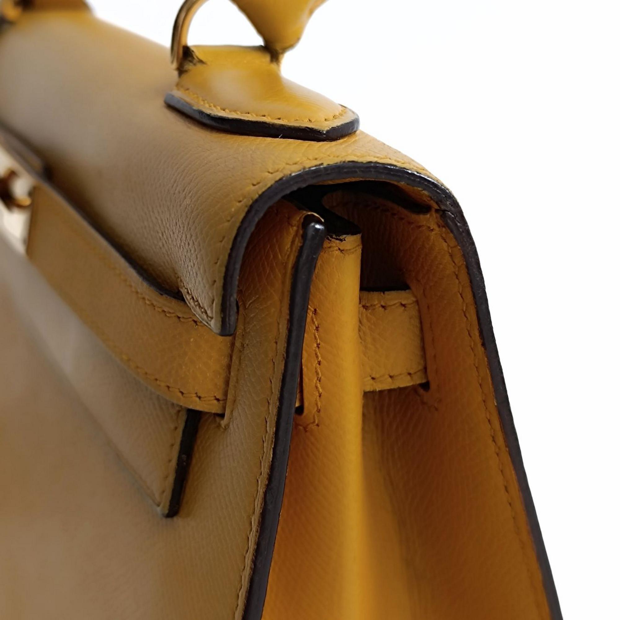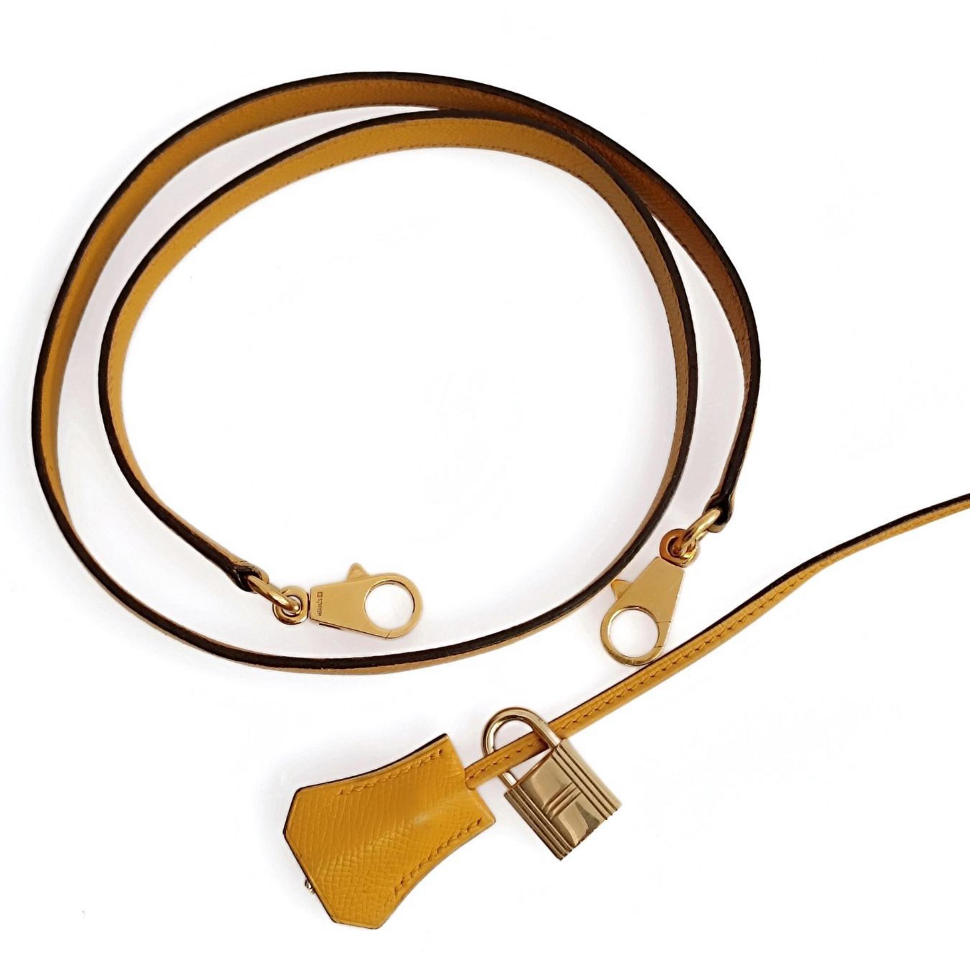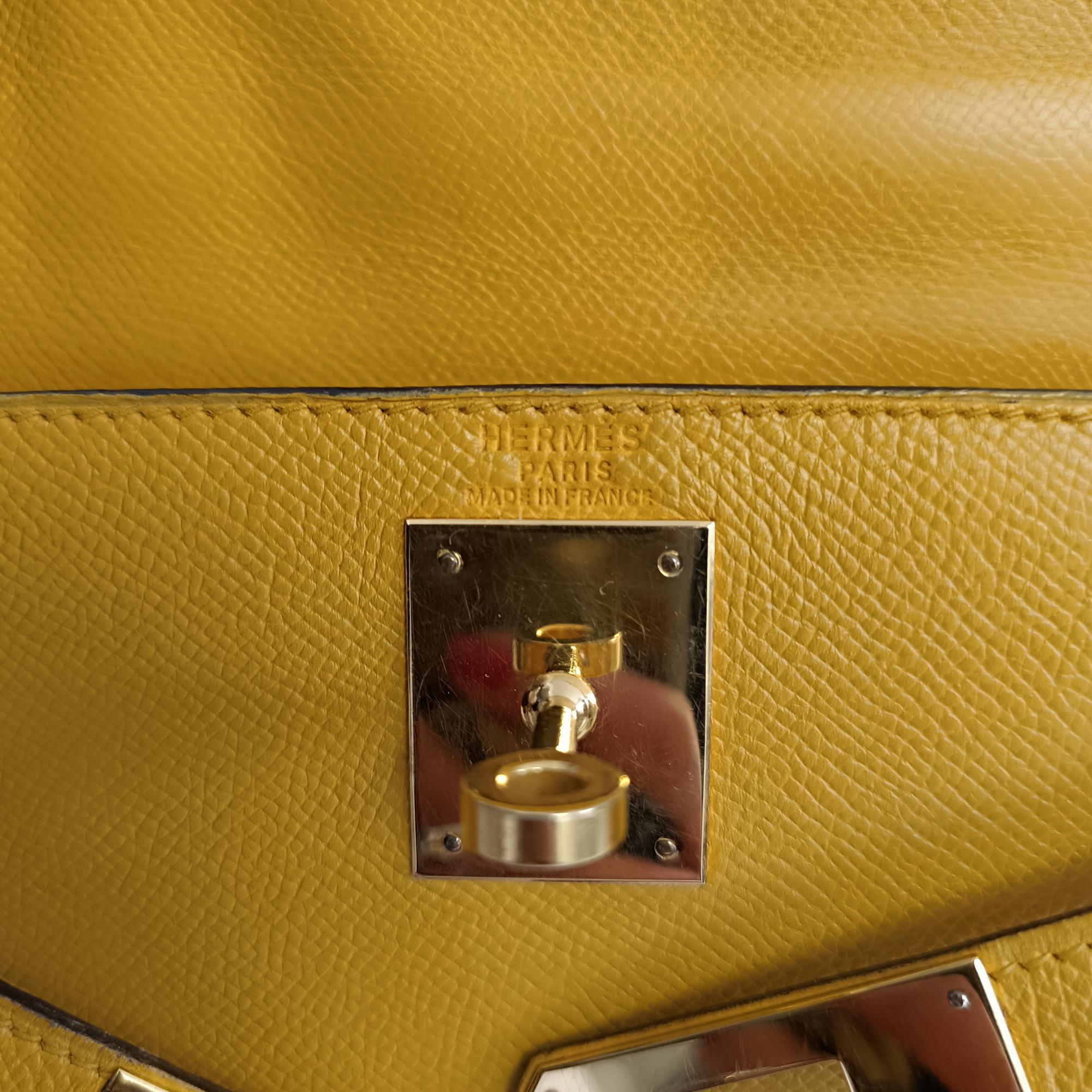 Hermes Kelly 28 shoulder bag in Courchevel yellow gold leather.