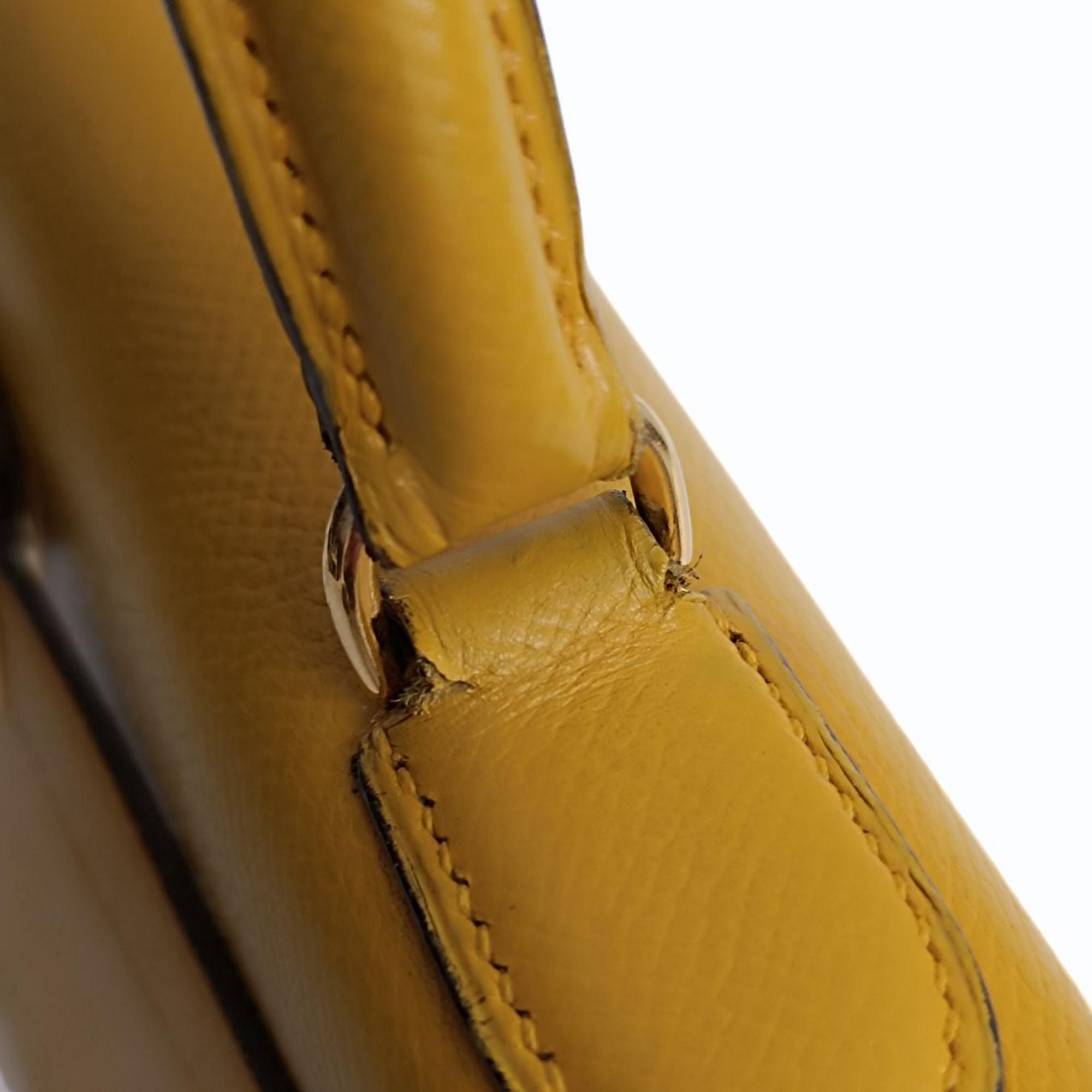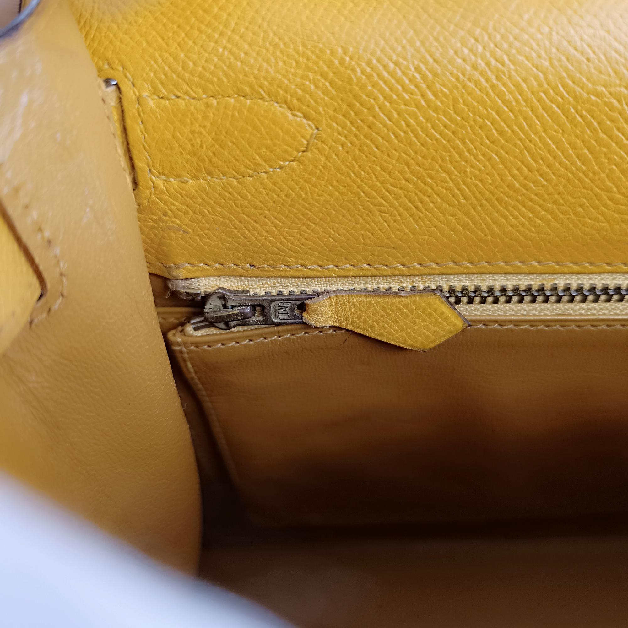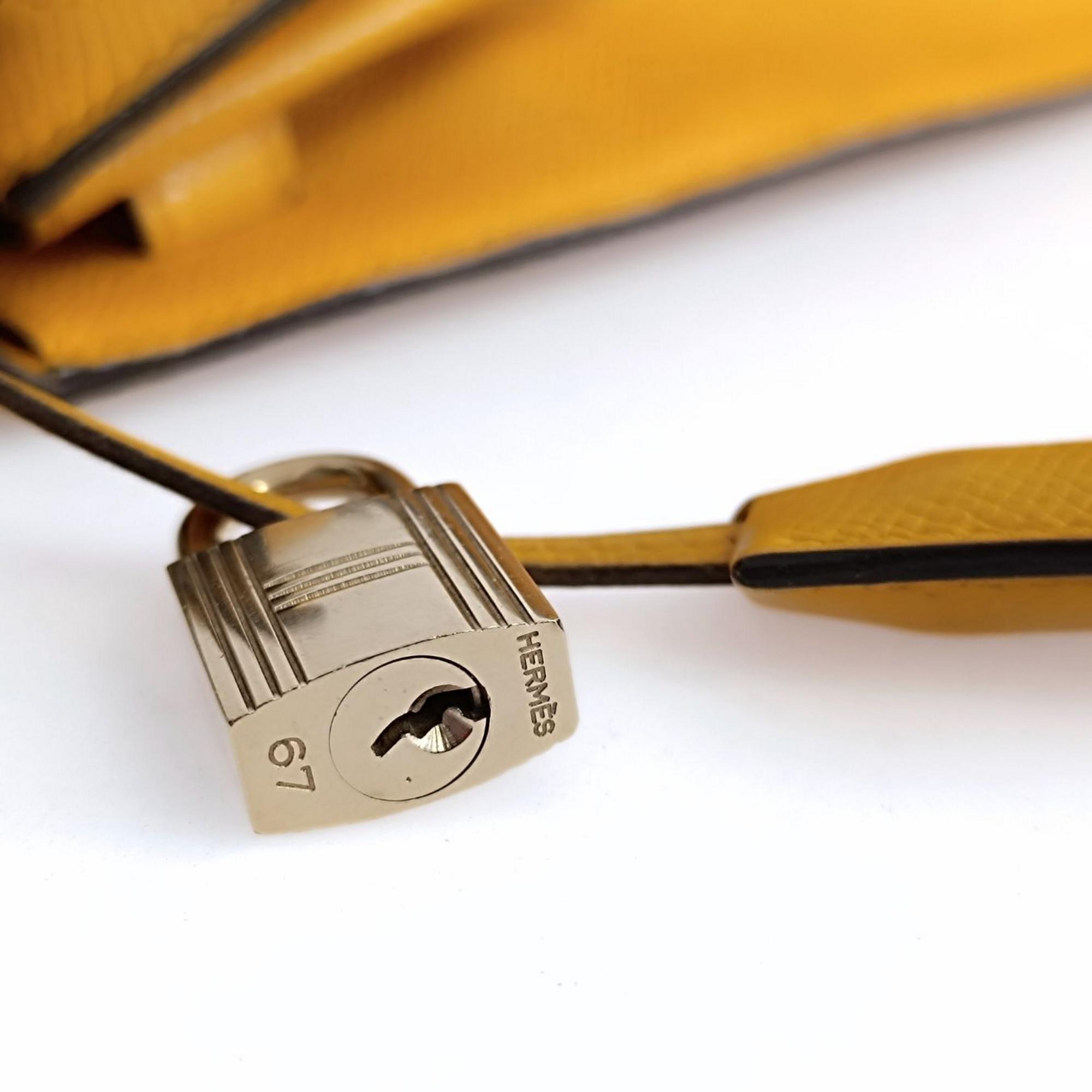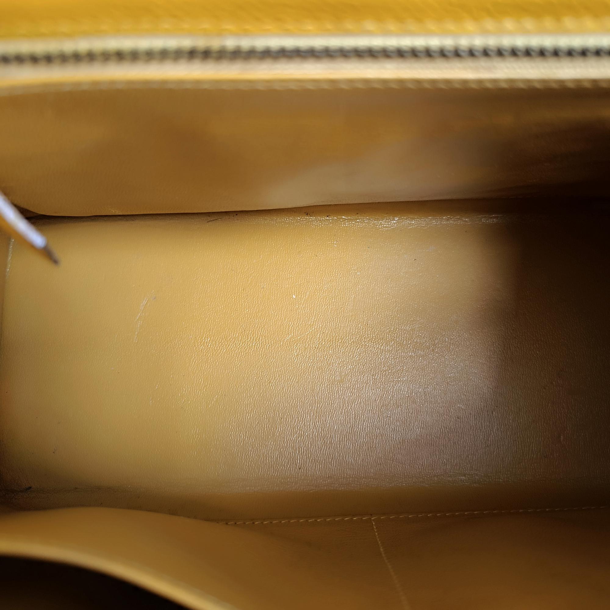 Hermes Kelly 28 shoulder bag in Courchevel yellow gold leather.