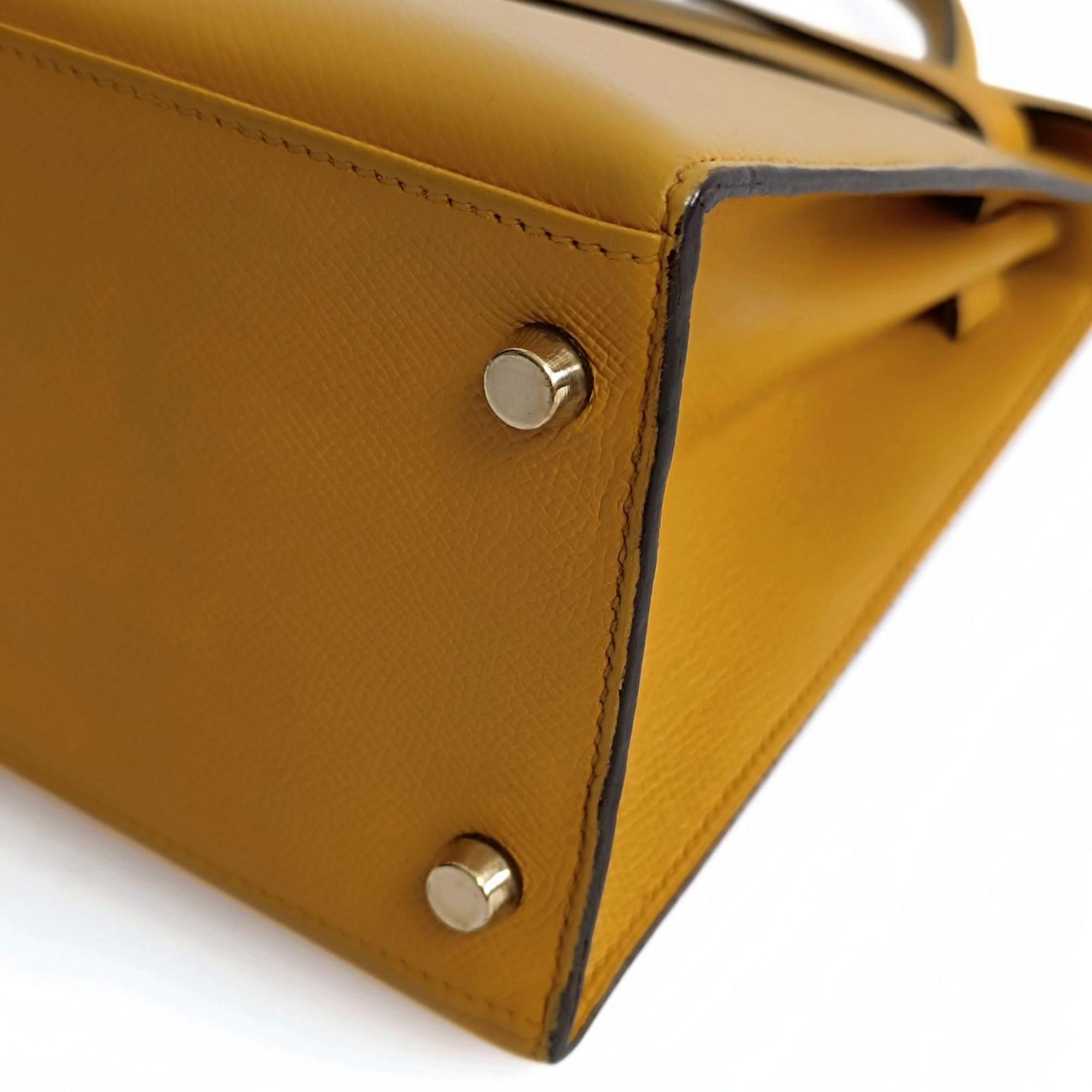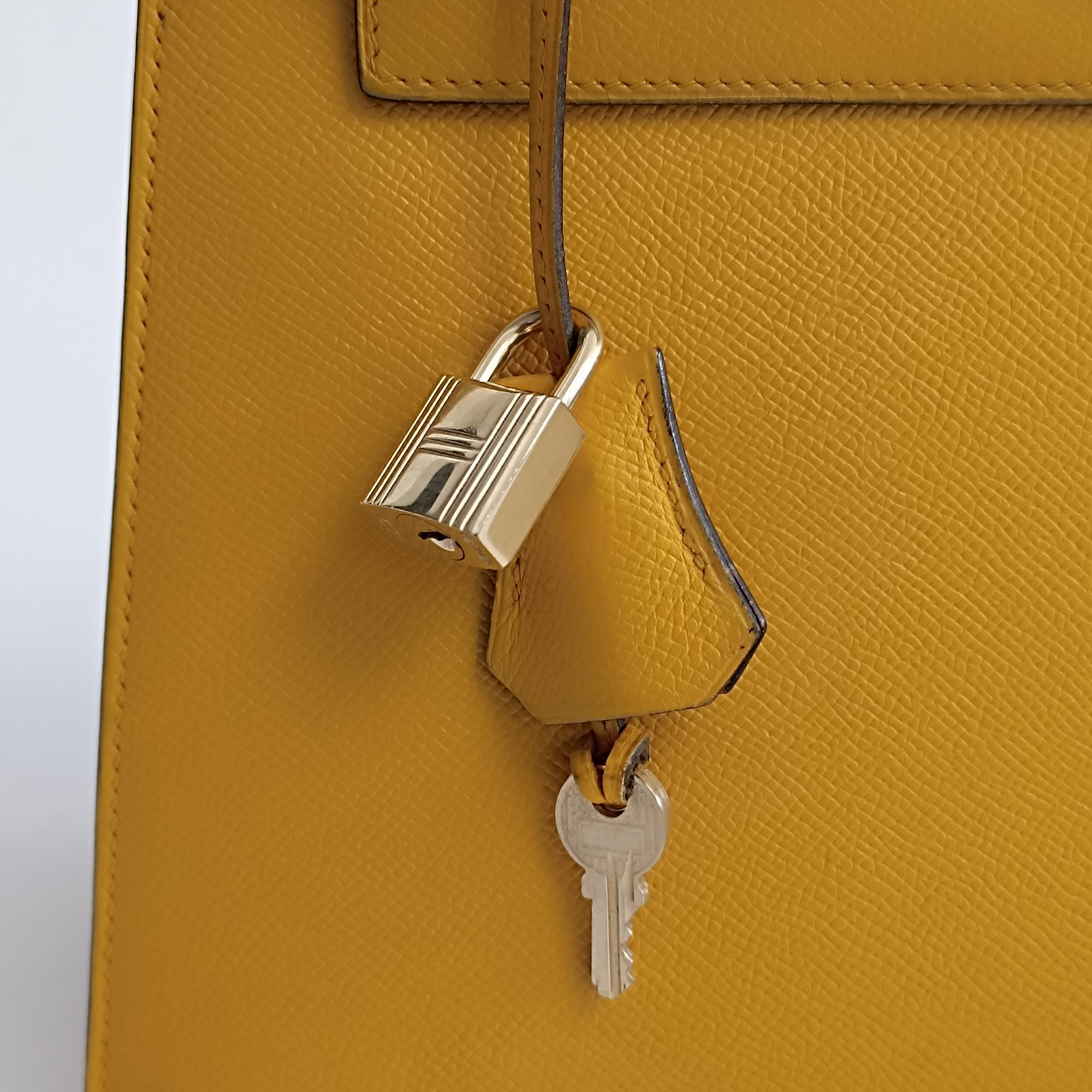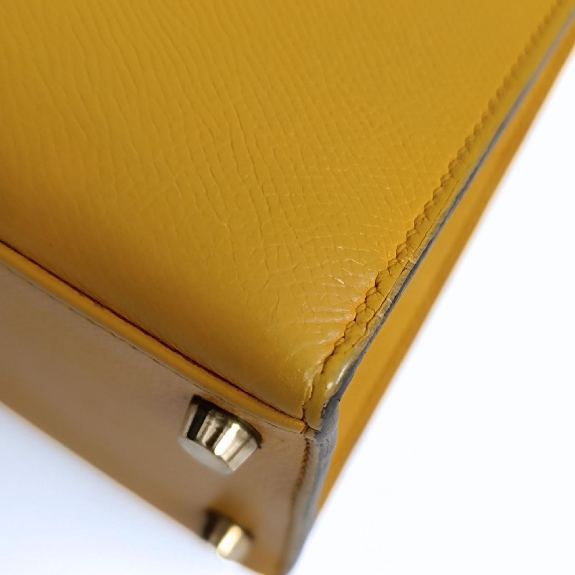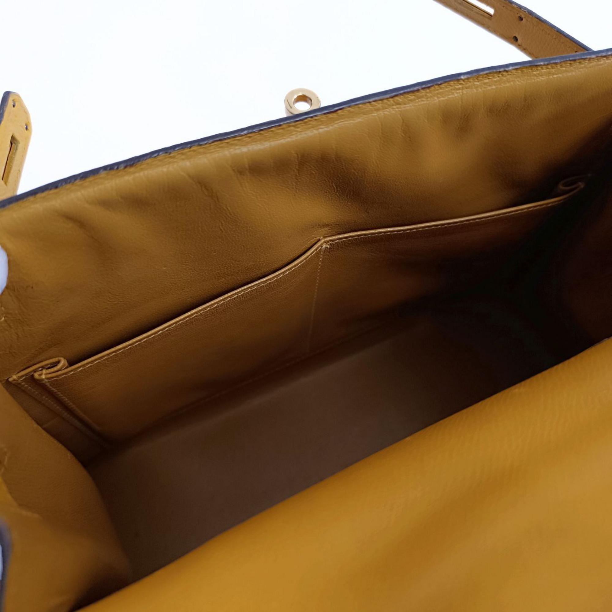 Hermes Kelly 28 shoulder bag in Courchevel yellow gold leather.