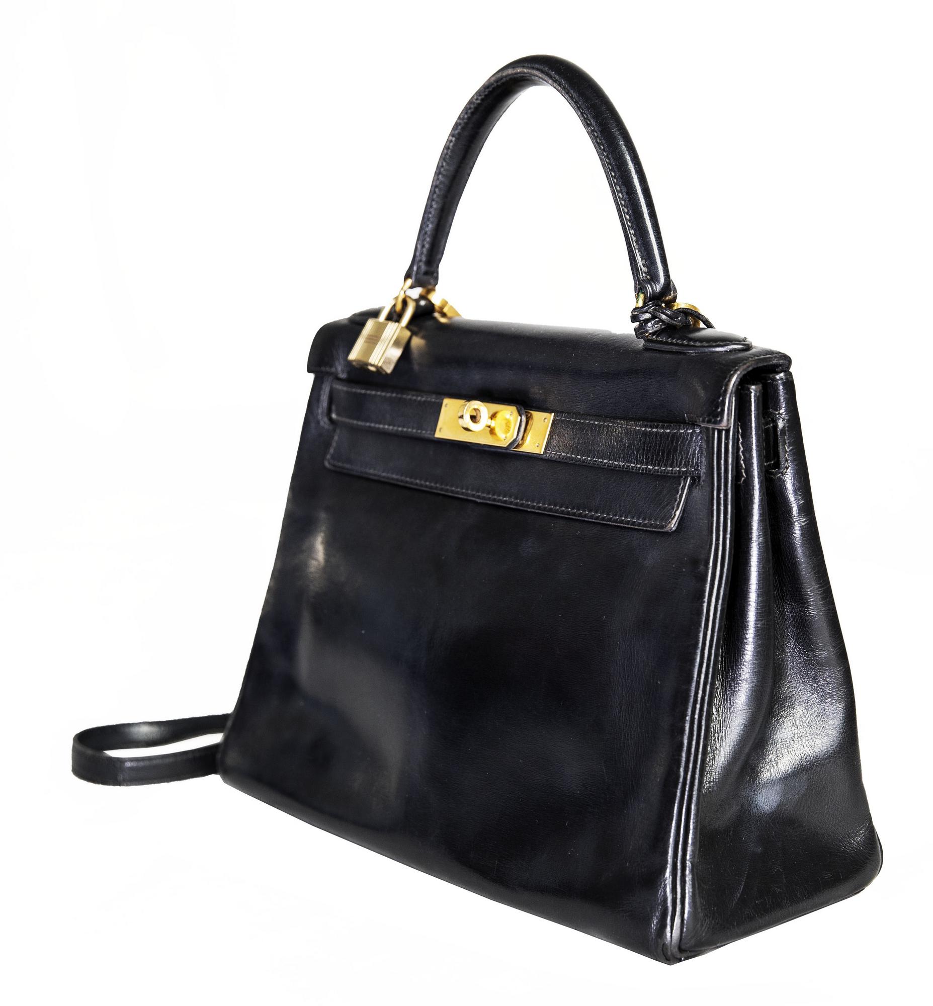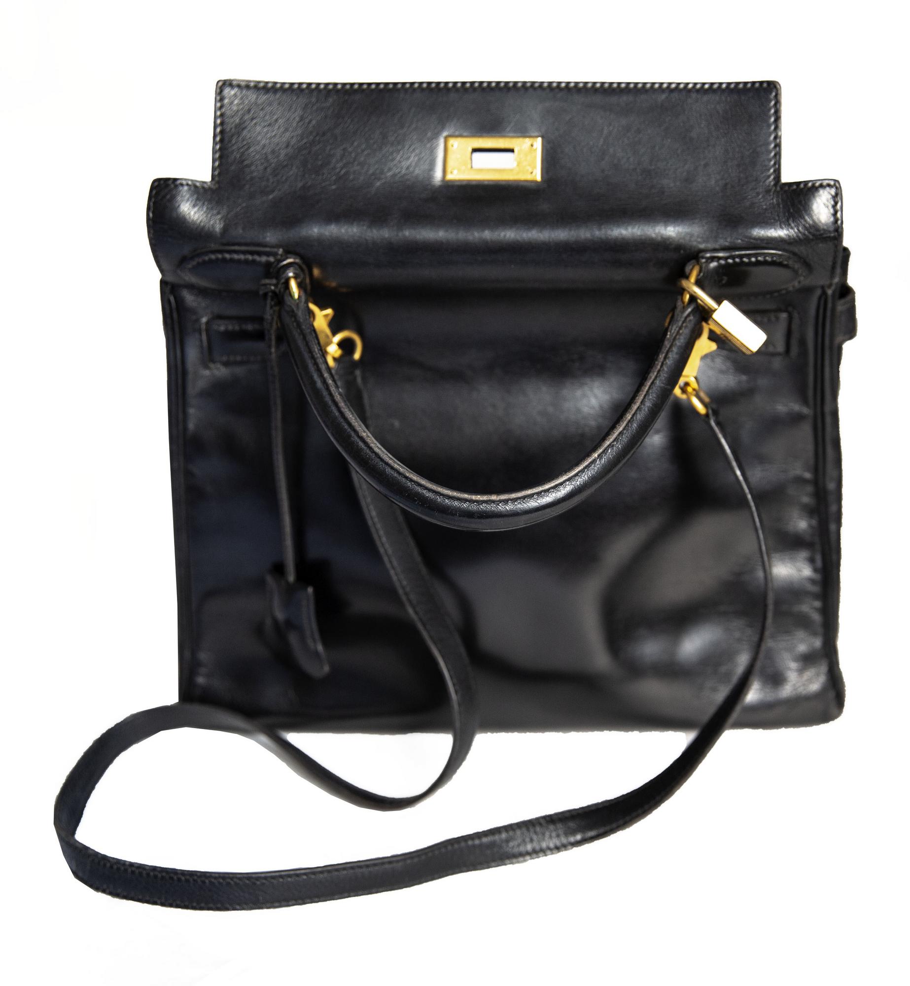 Hermes KELLY BAG 28 DESCRIPTION: Hermes Kelly 28 bag in black leather and...