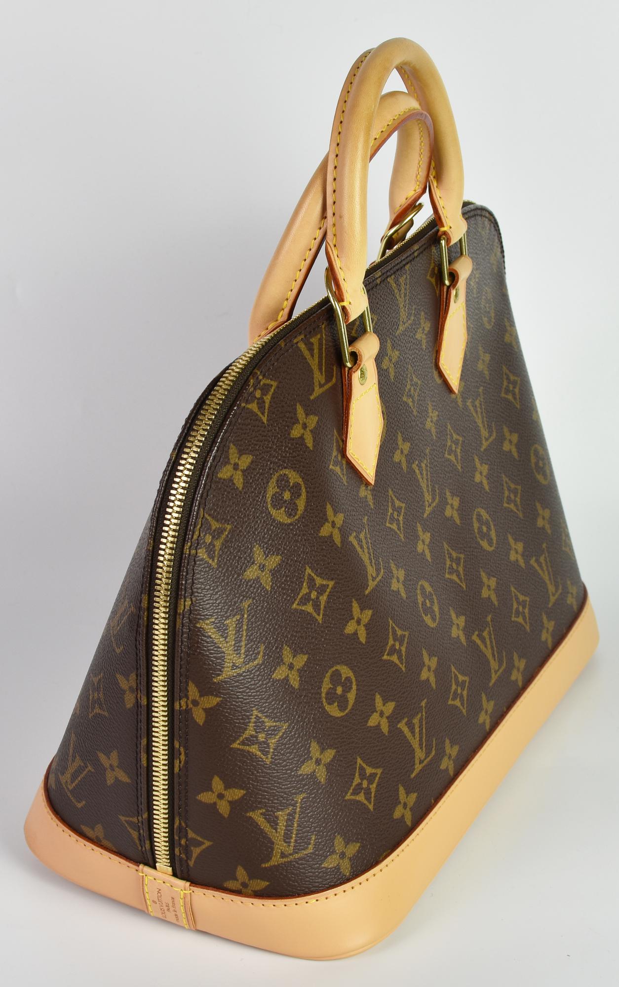 Handbag model Alma in monogram canvas, with double handles and cowhide trimmings. Zipper closure. Interior organized in a single compartment with two side pockets. Golden metal hardware. Dimensions: 30x24x16 cm. Height with handles 33 cm. Supplied with original dustbag. Product reference code: BA0054. Excellent condition.
