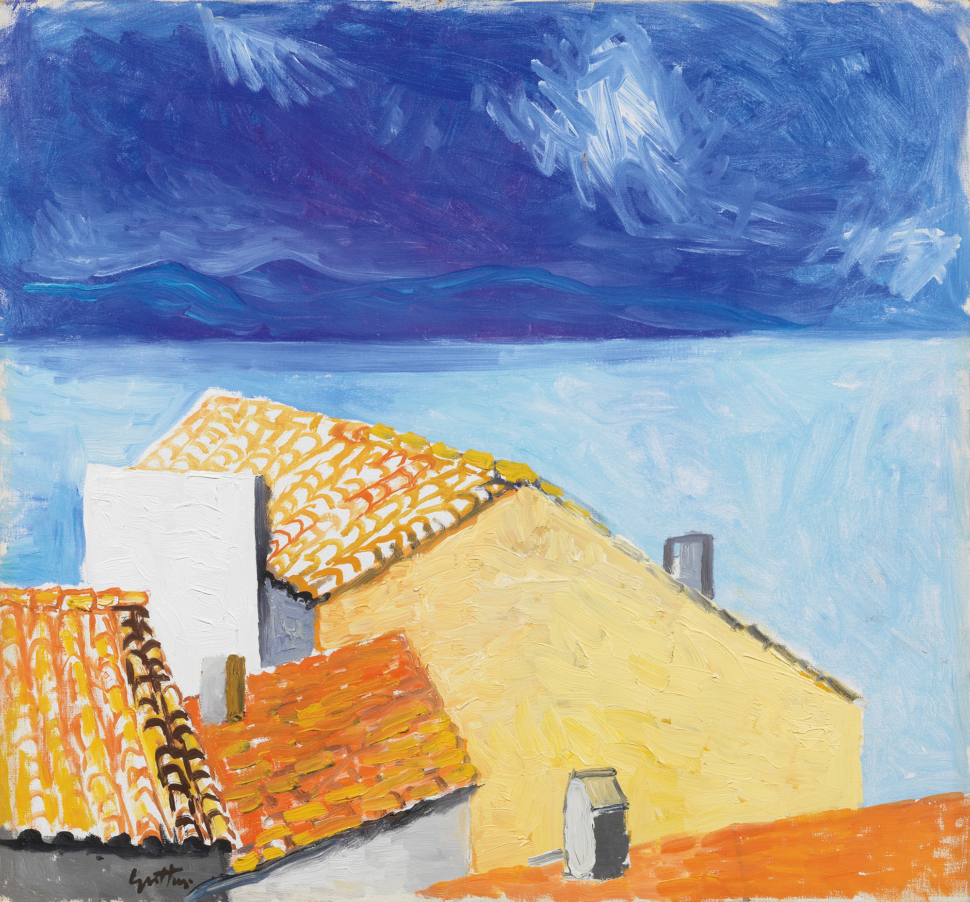 Renato Guttuso (Bagheria (Pa), 1912 - Roma, 1987) Case al mare in Sicilia,...
